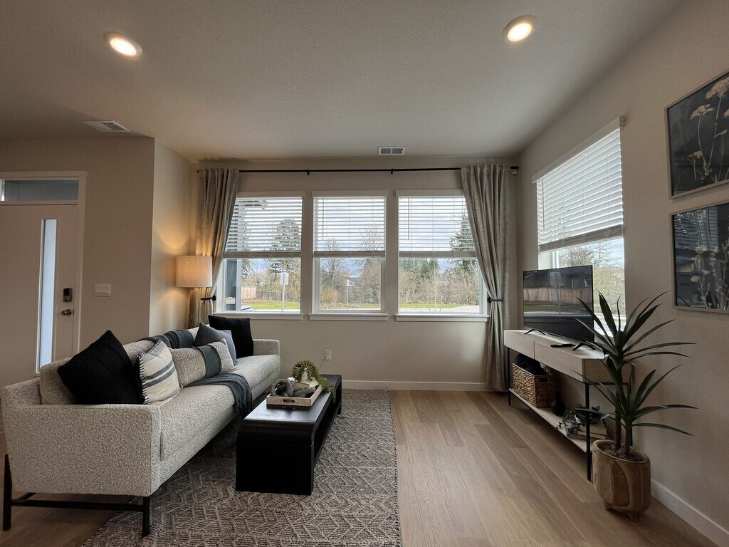This brand-new 2025-built 3-bedroom, 2.5-bath home with 1,375 square feet offers modern design, bright open spaces, and thoughtful functionality throughout. Situated on a desirable corner lot, the home features charming curb appeal with low-maintenance landscaping, small shrubs, and a rock-lined pathway leading up to the entry. Step inside to a bright and spacious open-concept main living area that seamlessly connects the living room, dining space, and kitchen. The living room is filled with natural light, featuring multiple windows along two walls and offering plenty of room for flexible furniture arrangements. The modern kitchen is fully equipped with brand-new appliances and stylish finishes, including white granite countertops, a white subway tile backsplash, and abundant cabinetry for storage. A flush-mounted single-basin stainless steel sink with bar seating, stainless steel dishwasher, gas range with mounted microwave, and a French-door refrigerator/freezer complete this sleek and functional space. Adjacent to the kitchen is the dining area, highlighted by tall windows that bring in additional natural light, creating a welcoming setting for meals and gatherings. The main level also includes a convenient half bathroom and access to the attached garage. Upstairs, you’ll find all three bedrooms along with a versatile loft area, perfect for a home office, study space, or additional lounge area. The primary suite is bright and spacious, featuring windows on multiple walls, plush carpeting, and a private en-suite bathroom with a single vanity, walk-in closet, and a step-in shower with sliding glass doors. The two additional bedrooms are similar in size and offer carpeting, bright windows, and closet space, making them ideal for guests, family members, or flexible use. A full bathroom with a single vanity and tub/shower combo is conveniently located nearby. A dedicated laundry room upstairs, located just off the primary suite, adds everyday convenience. With its brand-new construction, open layout, modern finishes, and flexible living spaces, this corner-lot home offers a perfect blend of comfort, style, and functionality. Call or Text Our Leasing Agent to schedule a showing! English Speaking Spanish Speaking YouTube Link: Visit our website to apply and view other homes we have available! Do you need property management services? Maximize your income and cut your costs!