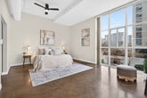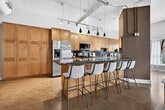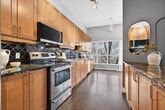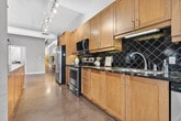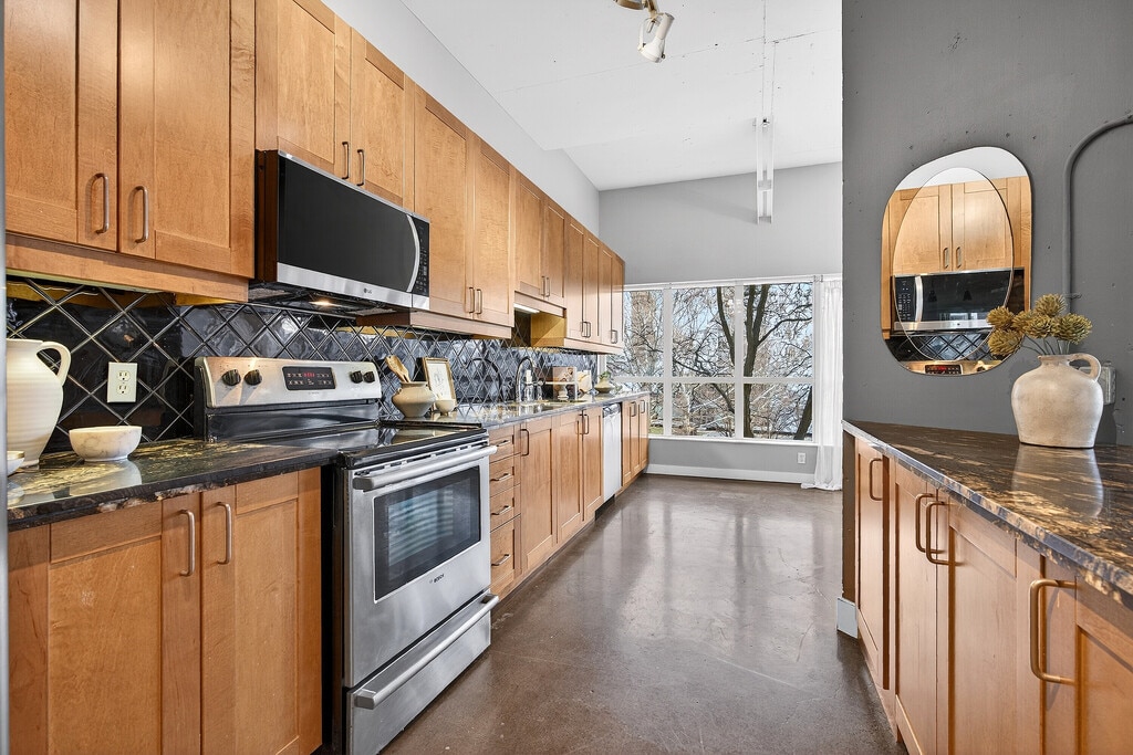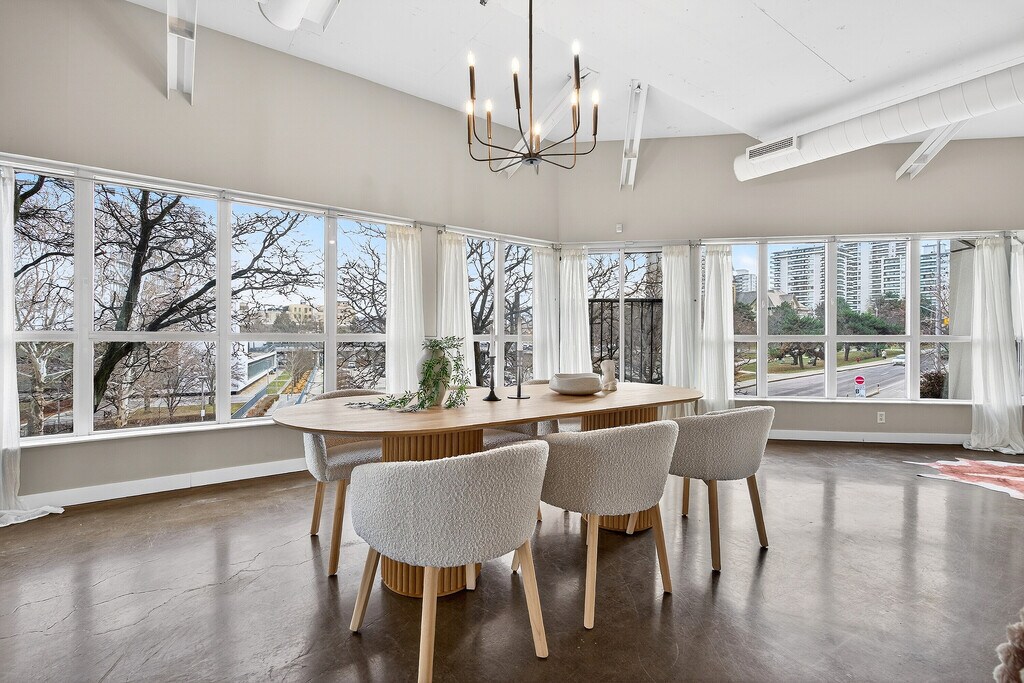An exceptional corner loft at the sought after Core Lofts offers almost 1,700 square feet of bright, open concept living in the heart of downtown Hamilton. This 2-bedroom, 2-bathroom residence features 10+ feet ceilings, walls of glass, views of the park, and beautiful morning sun that fills the space with natural light. The spacious kitchen is appointed with oak cabinetry and granite countertops, flowing seamlessly into expansive living and dining areas ideal for both everyday living and entertaining. The primary suite includes a spa-inspired ensuite with jacuzzi tub and oversized shower. In addition to two bedrooms, the layout includes a separate den-style alcove off the main living area, offering flexible use as a home office or sitting area. The second bedroom is interior and does not include an exterior window. Beautifully presented with a bright, clean feel throughout, this home offers effortless condo living, including in-suite laundry, one underground parking space and a storage locker (both included in the lease), in a secure, well-managed building with a fitness centre, rooftop terrace, and party room. Ideally located near St. Joseph's Healthcare Hamilton, the David Braley Health Sciences Centre, McMaster University, and GO Transit. A great option for professionals relocating to Hamilton, including medical residents and those seeking a well-appointed home for a defined term.