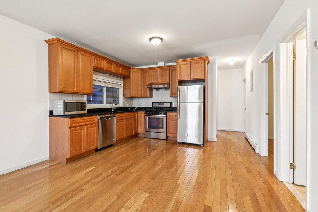 This beautiful fully renovated 3 bedroom apartment with two full baths and private backyard shared with the upstairs unit is available. The unit has modern top quality Samsung in-unit washer and dryer and an open plan kitchen with new cabinetry. It is just mere steps from the Journal Square Path Station and numerous restaurants and stores. Despite this, the street is a quiet single access street with street parking. This combination of quiet and location near amenities is unbeatable.