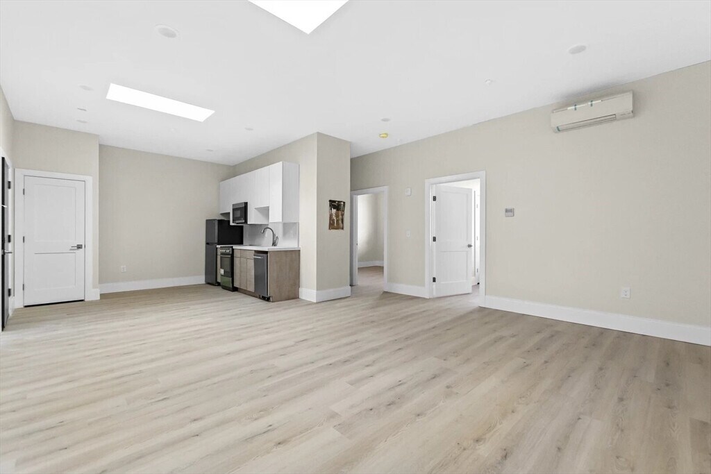 Three bedroom,one bathroom newer construction apartment for rent. Top floor unit with the best natural light,skylights,and open floor plan. All three bedrooms have their own double closets and good sized. Each room has its own heat and air conditioning. Water and parking included. MLS# 73455729