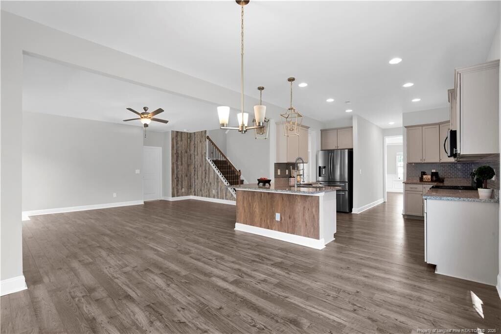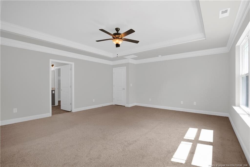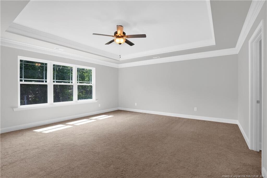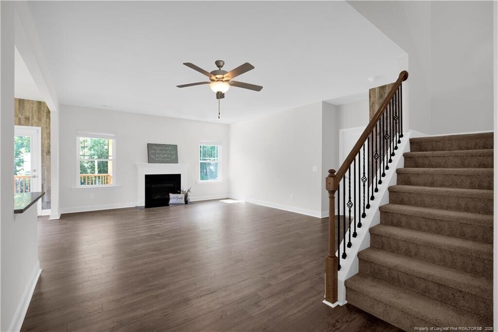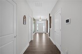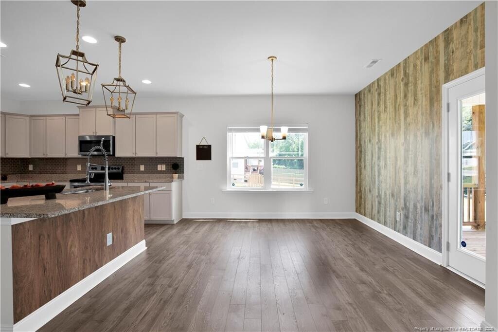 This practically new home has been beautifully maintained .The thoughtfully designed floor plan features a first-floor primary suite, a spacious family room, and a formal dining room, along with a rare 3-car garage providing plenty of space. You’ll love the laminate wood flooring that flows throughout the main living areas, creating a warm and inviting atmosphere. The kitchen is a chef’s dream, featuring granite countertops, ample cabinetry, and an open layout perfect for entertaining. Retreat to the luxurious primary bath, complete with a garden tub, separate shower, and elegant tiled walls. Step outside onto the large deck ideal for gatherings or quiet mornings and enjoy the private backyard, a peaceful outdoor escape. This home offers five spacious bedrooms, providing flexibility for guests, home offices, or hobby spaces. The solar panels convey with the home, offering energy efficiency and long term savings for the new tenant.