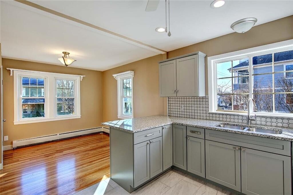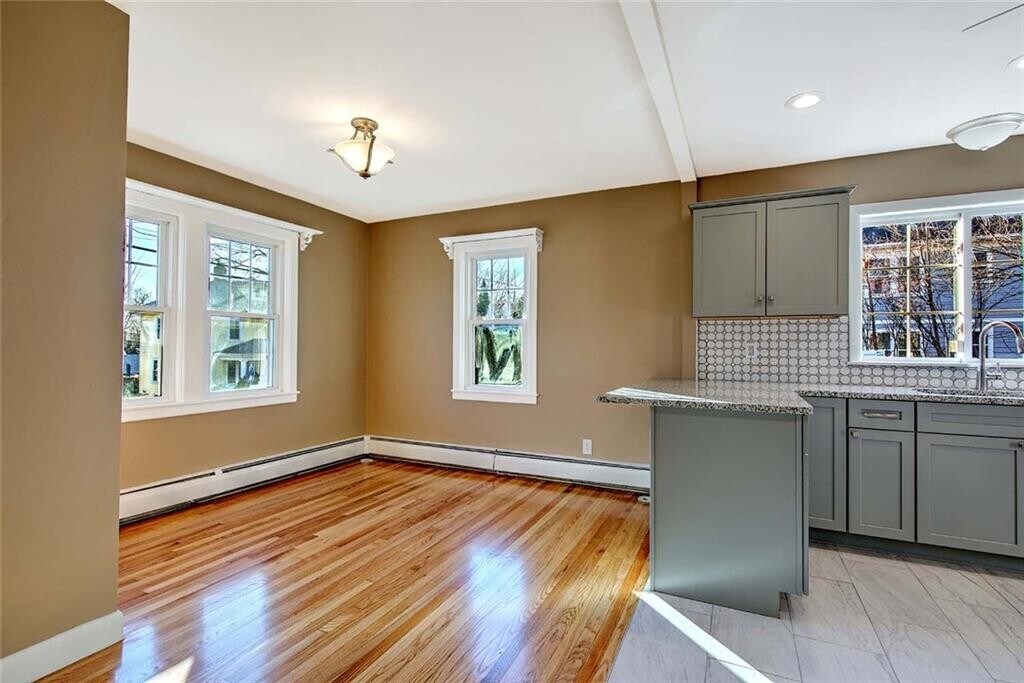 Handsome renovated brick home available for rent in a great Elmhurst location. Offering over 2,000 square feet and 4 bedrooms,this home features a flexible and well-designed layout.The first floor showcases a completely new kitchen with new appliances,cabinetry,a breakfast bar,and a dining area. A cozy living room sits nearby,along with two bedrooms and a full bathroom. Just off the main living space,enjoy a four-season sun porch overlooking the expansive yard. Upstairs,the light-filled primary bedroom features skylights and an en-suite full bath,which connects to the fourth bedroom,ideal for an office,nursery,or dressing room. Additional highlights include first-floor central A/C,laundry in the basement,and ample parking. A charming home in a sought-after Elmhurst neighborhood,close to local amenities and downtown Providence. Pets will be considered on a case-by-case basis. MLS ID 1403526