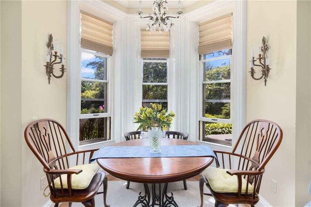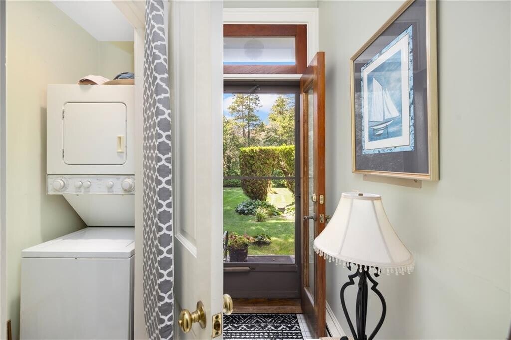 Available September 1,2026 to June 1,2027. Beautiful estate setting on over three acres of mature grounds,this first floor condo is the only unit with a private porch and patio. Large circular driveway with one assigned parking space. Grande front entryway with wrought iron gates leads to the bright southwest facing unit. Beautiful hardwood floors abound with ceramic tile floors in the kitchen,bathrooms,laundry room,and side portico hallways. Dramatic 12-15 foot ceilings with intricate molding and detailed chandeliers. Two decorative marble fireplaces in the living room and primary bedroom. The living/dining combination is quite spacious with extra room for a buffet,dry bar,and secretariat. Original glass doors with transom windows and custom shutters lead to the kitchen and indoor/outdoor entertaining. Plenty of cabinets and floating shelves for storage. The large primary bedroom with king size bed has two side hallways with the same original glass doors with transom windows and custom shutters. All three of these side rooms were part of a large west facing outdoor portico back in 1840. Since being converted to condos,these areas consist of a kitchen,powder room,laundry room,& primary bathroom with exits to the private side patio & porch. Gas heat. Furnished except for linens and towels. No pets allowed. Close to downtown Newport. Strong credit,references,exit cleaning fee,and renter's insurance required. MLS ID 1406076