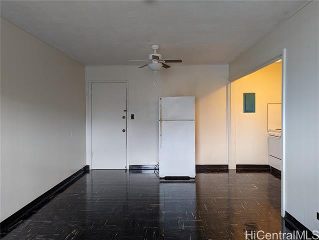 Second floor walk-up studio with no parking, conveniently located in the heart of Kailua Town at the intersection of Kailua and Kuulei Roads is available for rent. Many shops, take-outs, restaurants, banks, supermarkets, and bus stops are located within close walking distance from this rental. Ground floor tenants in this rental building include a Boba Tea/Coffee shop, an authentic Mexican take out, an urgent care clinic, and opening next year, a barber shop. This clean and recently painted rental unit is situated in a well-maintained building, with a coin operated laundry room, secured gated entrances, and security cameras in hallways. Furnished with range, refrigerator, ceiling fans, window AC. Floors are all vinyl. Rent includes water/sewer; tenant pays electricity, and at tenant option, cable TV and landline. NOTE: PARKING IS MONITORED AND RESTRICTED DUE TO COMMERCIAL BUSINESSES DOWNSTAIRS! Best for people with no vehicles. Parking is restricted Mon THROUGH Sat from 8:30am-5:30pm. Renter's insurance is required. No pets and smoking is not allowed in the unit and building. Application Fee is $27 per adult applicant.