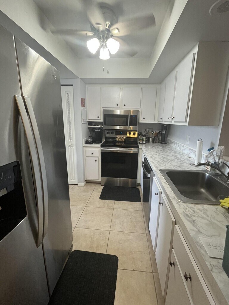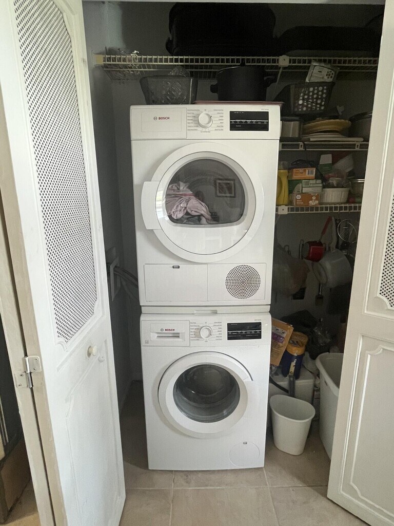 Walk-up 2nd floor condo in a 55 plus senior community. 2/2 unfurnished, with tile and laminate flooring throughout. Nice size rooms. Kitchen features an eat-in breakfast area, pantry and laundry closet with a stackable washer/dryer. Large primary bedroom with a walk-in closet and a Florida room with windows to capture east/west breezes. Across from the newly renovated clubhouse and within walking distance via the recently paved parking lot. Amenities include a Lobby with sitting area, Fitness Center, Game Room with Billiards, Community Room/Auditorium with a Stage and a Library. Walk to shopping, houses of worship and restaurants. Easy access to the Turnpike, I-95 and close to Delray Marketplace. Approximately 7-8 miles from downtown Delray and the beach.