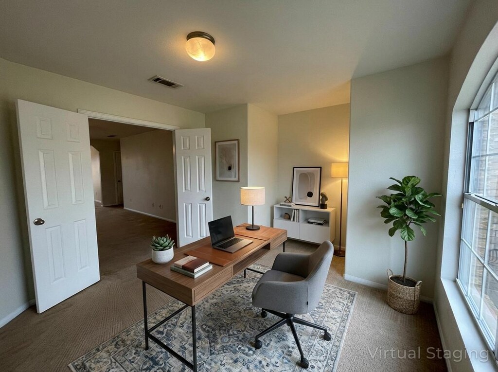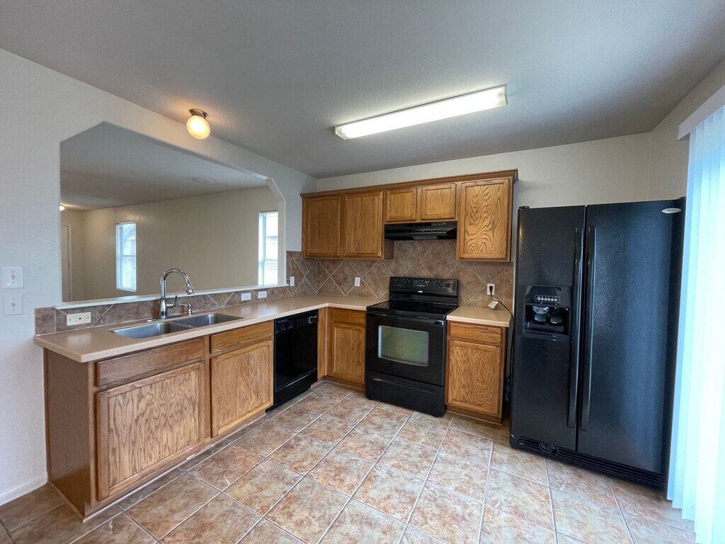 View 360° virtual tour: This 3-bedroom, 2-bath single-family home with a bonus room offers comfortable living with versatile space perfect for a home office, playroom, or flex space. The bedrooms and living areas feature cozy carpeting, while the kitchen, dining area, and bathrooms are finished with durable ceramic tile flooring. The kitchen is equipped with matching appliances, including a glass-top stove, dishwasher, and side-by-side refrigerator with ice and water dispenser, along with an in-kitchen dining area ideal for everyday meals. A sliding glass door off the kitchen leads to an open patio and a fenced backyard, providing a great space for outdoor relaxation or entertaining. The primary suite includes a private ensuite bathroom featuring a double vanity, garden tub, and separate shower. Additional features include washer and dryer connections, an attached two-car garage, and pet-friendly accommodations, making this home both functional and welcoming. Appointments aren't required to tour. Contact us or stop by our Killeen office to earn more and see this home in person once it becomes available! We are located at 1020 W Jasper Dr, Killeen, TX 75642. Disclaimer: The furnishings or enhancements shown are AI-generated and intended for inspiration only. They may not reflect the actual scale, condition, or current features of the property.