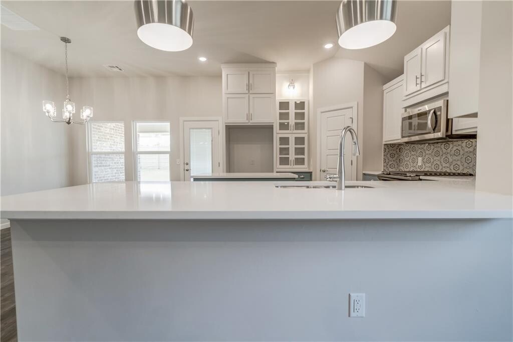 Come home and sit out on the front covered patio in the porch swing after a long day. Beautiful Craftsman style Aspen plan in Deerbrook Neighborhood. 4 bedrooms or 3 plus an office space. Open concept floorplan with generously sized living space that flows into the kitchen and dining area. Upgraded gas stove,mosaic tile backsplash and laundry room floor,wood look tile in main living spaces. Spacious 3 car garage with large storm shelter that fits up to 10 people. Large covered back patio. *Pets are allowed on case by case basis with owner approval*.