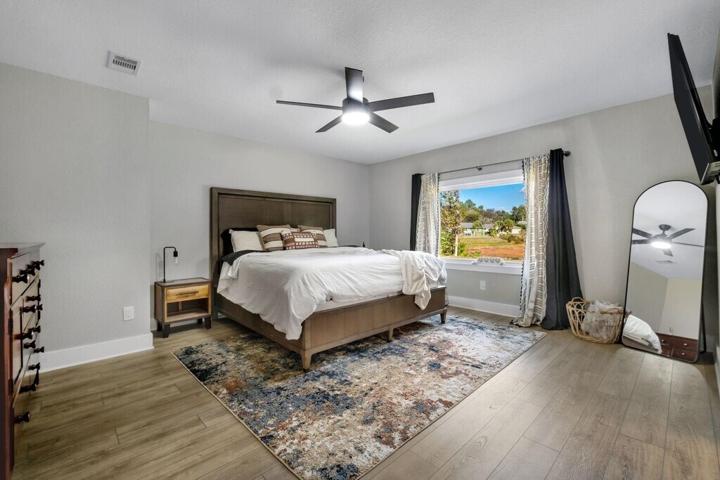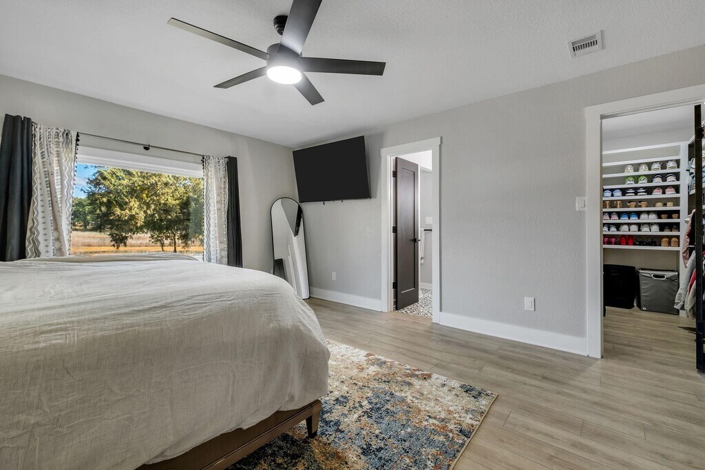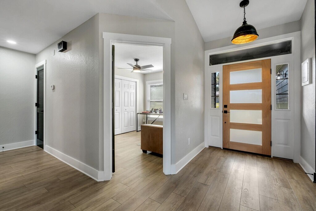 Welcome to 6605 Donerail Trail This home stands out as truly one of a kind,beautifully remodeled and designed with top of the line finishes throughout. The open living area features expansive windows overlooking Lake Kilkee,filling the space with natural light and serene water views. The kitchen is a showstopper,boasting quartz countertops,new cabinetry with soft close dovetail drawers,and premium Samsung Bespoke appliances. Luxury vinyl plank flooring flows throughout the home,complemented by new windows,modern fixtures,and custom closets in all three bedrooms. The primary suite offers a tranquil retreat with a large picture window,double vanities,and an oversized walk in shower. Located in a quiet,family oriented neighborhood known for its welcoming community and A rated school zones,this home provides both comfort and peace of mind. Enjoy your morning coffee while taking in the peaceful scenery of nearly an acre leading down to the lake. Additional features include a spacious two car garage and a thoughtfully curated design aesthetic unlike anything else available.