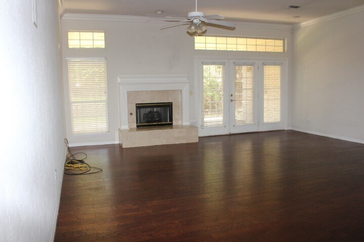 Beautiful Hardwood flooring and Tile flooring throughout the home. 3 bedrooms, 2 baths, 2 car garage spacious living room with fireplace, Dining room, breakfast bar, center Island , Refrigerator, stove, dishwasher, microwave, garbage disposal, separate laundry room, large entry way, cathedral ceiling, ceiling fans, covered patio, sprinkler system, storage shed, fenced back yard, master bedroom is very spacious with a private entrance to the patio, double sinks, large walk-in closet, central heat and air. Pet friendly.