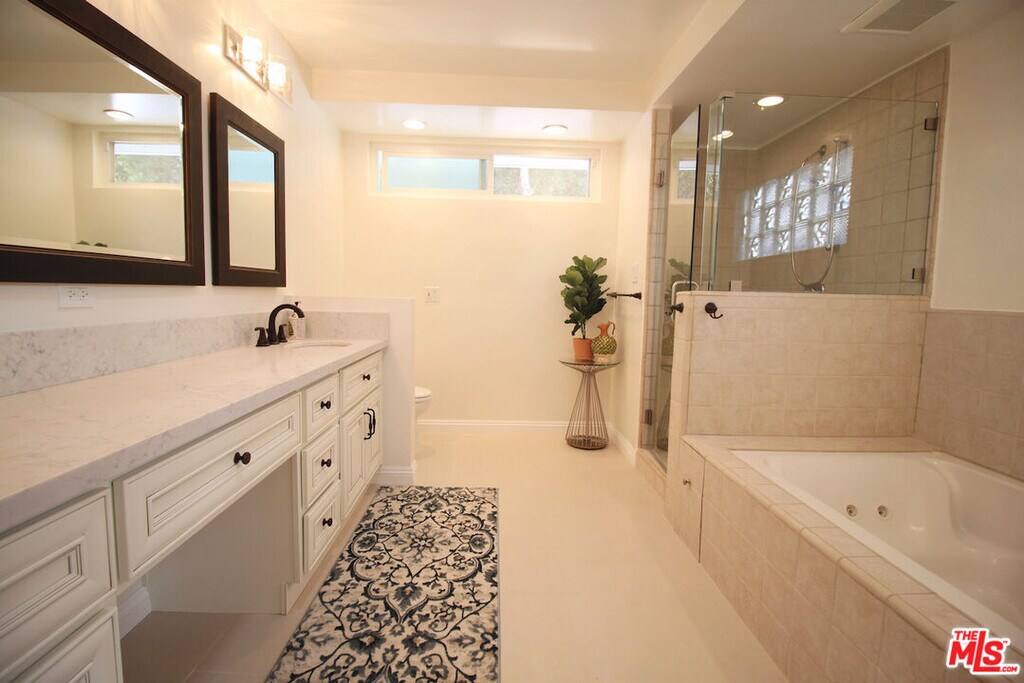 Are you looking for a short-term housing for home renovation or an extended stay in Los Angeles for work / vacation / family? This beautifully renovated 4 bedroom / 4 full bathroom home in prestigious Ladera Heights is fully furnished with a well-stocked kitchen, high-speed FIOS internet in a close proximity to downtown Culver City, Silicon Beach companies in Venice, Playa Vista, Culver City, Downtown LA. Less than 4 miles to LAX, ~12 miles to downtown LA, ~10 miles to UCLA, less than 7 miles fo the nearest Beach. This rent includes an access to 3-car garage and huge driveway that could accommodate 3, 4 cars. Huge Backyard space. Minimum stay of 30 days or more. Property may be delivered vacant for less monthly rate. Landscaping is work in progress. MLS# 26698249