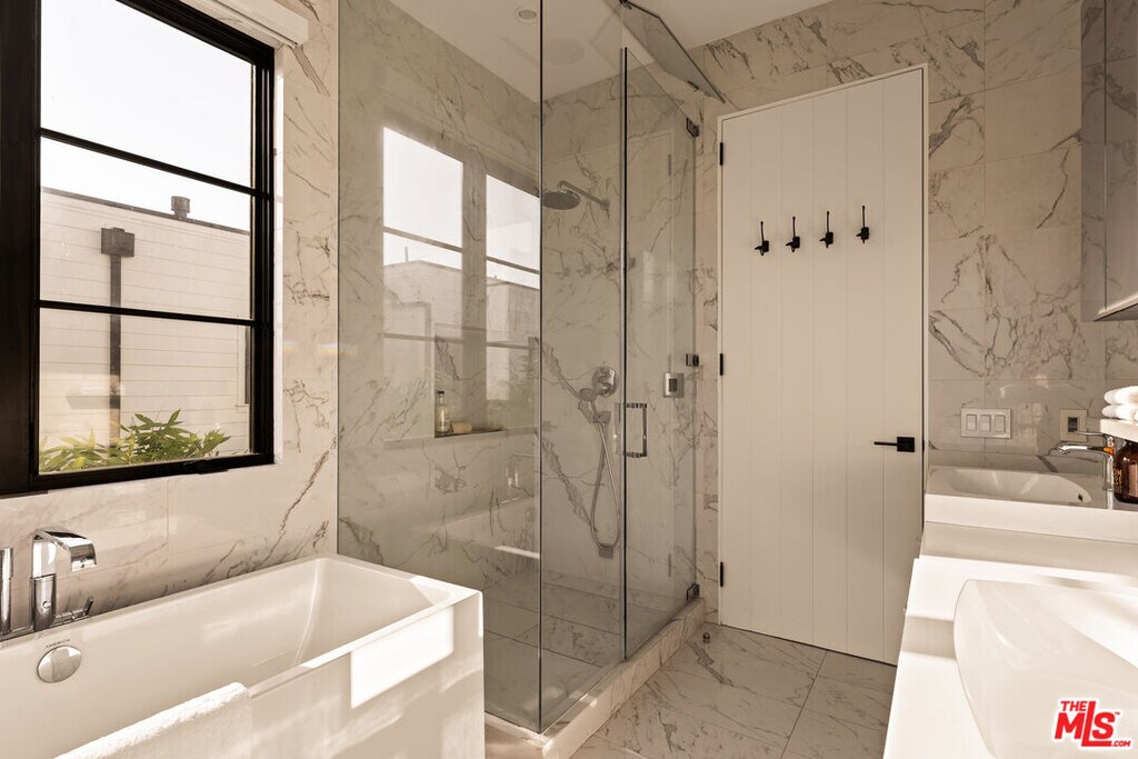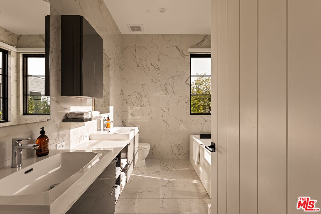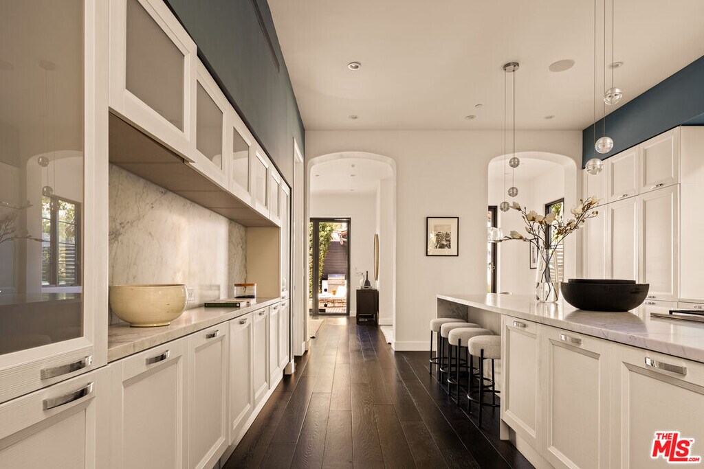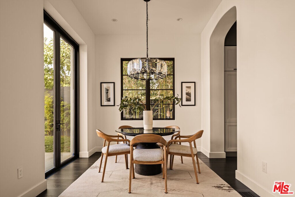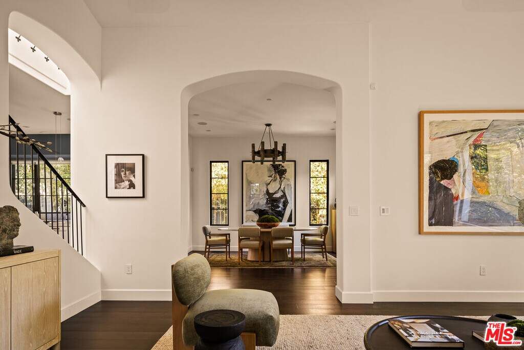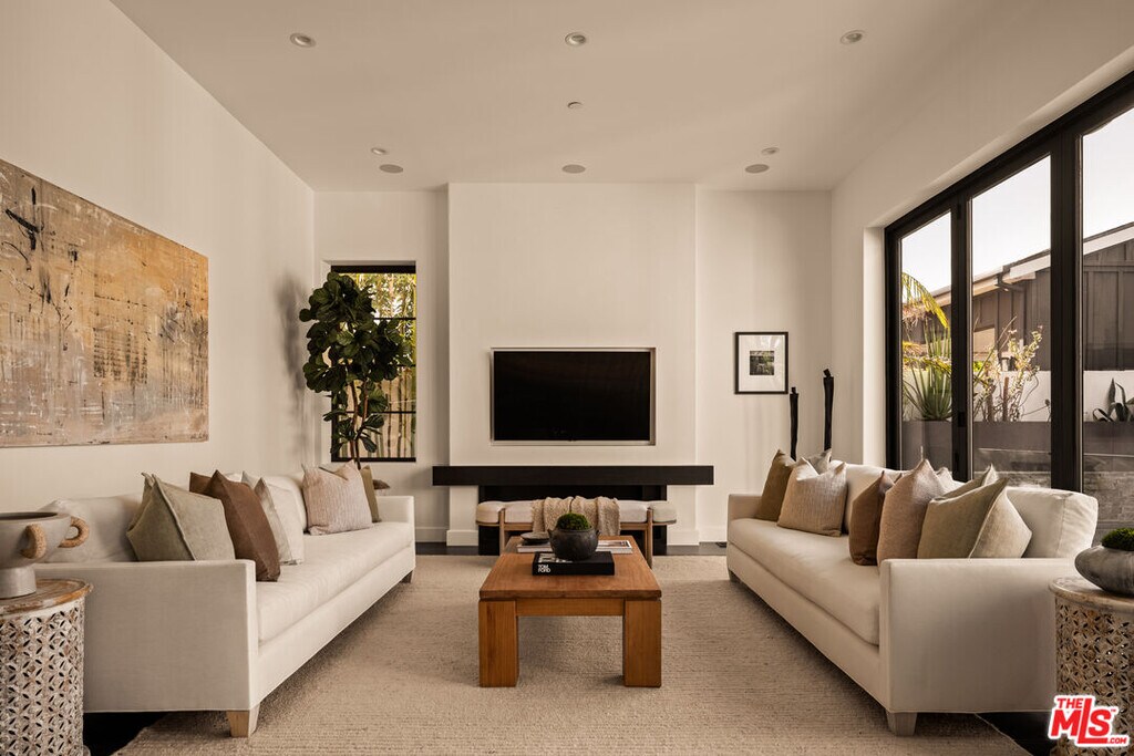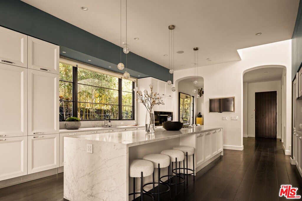 Tucked away on a coveted street in prime Beverly Grove, this Spanish inspired contemporary offers timeless character blended with modern comforts. Behind a gated entry, the 5 bedroom, 4.5 bathroom residence includes a newly built ADU ideal for guests, work from home, or additional income. A dramatic arched front door opens into a thoughtfully designed floor plan, where soaring ceilings, rich mahogany toned wood floors, and curated designer finishes echo the home's architectural roots. The formal living room features a statement fireplace, custom inlaid tile, and a storybook window that floods the space with natural light. The chef's kitchen is outfitted with Miele appliances, a marble waterfall island, and custom cabinetry, seamlessly connecting to an open-concept dining and family room. Additional luxuries include integrated speakers throughout, and a home security system. Floor to ceiling glass doors create a seamless indoor-outdoor flow to the private backyard oasis complete with a sparkling pool, spa, and lounge-ready patio. Professionally landscaped, the yard offers numerous upgrades such as custom pool lighting and recently installed safety fencing. Upstairs, the expansive primary suite offers a fireplace, private terrace with views of the Hollywood Hills, automated black-out blinds and a spa-inspired bath. Two additional upstairs bedrooms share a stylish Jack-and-Jill bath, while a guest suite downstairs offers privacy and flexibility. The ADU features a full kitchen and bathroom, ideal as a guest house, studio, or rental opportunity. Perfectly positioned in one of Los Angeles' most refined and walkable enclaves, this residence offers seamless access to nearby Melrose Avenue, The Grove, and the Beverly Center, along with a curated array of renowned restaurants, boutique shopping, and cultural landmarks. A rare offering that blends architectural character with an address defined by both elegance and ease. MLS# 25608775