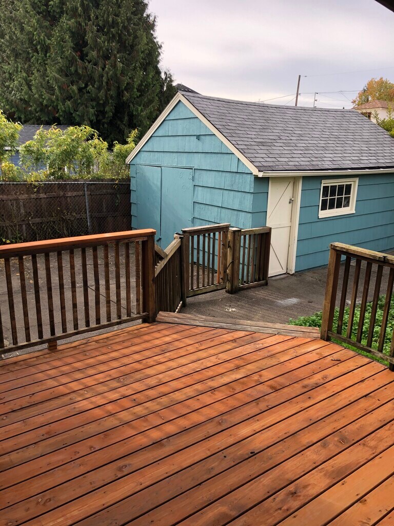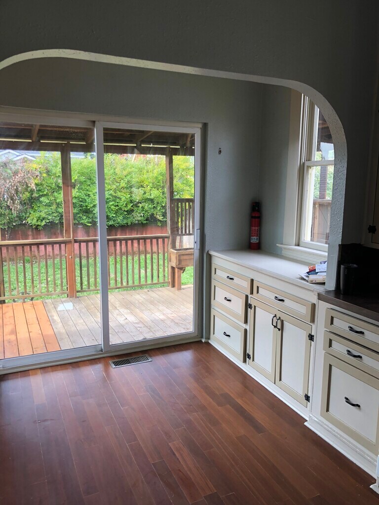 Charming Arbor Lodge 3 bed - 2 bath bungalow with character. Beautiful hardwood floors throughout first level. 2 of the bedrooms and 1 of the bathrooms located downstairs in finished basement. Basement has laminate flooring throughout with carpet in one of the bedrooms. Bonus room upstairs that could be used as an office. Spacious kitchen with dishwasher. Laundry room in basement. Large deck for enjoying the outdoors. Garage offers extra storage space. Two blocks from Arbor Lodge park, close to Chief Joseph elementary and walkable to restaurants, coffee, and New Seasons.