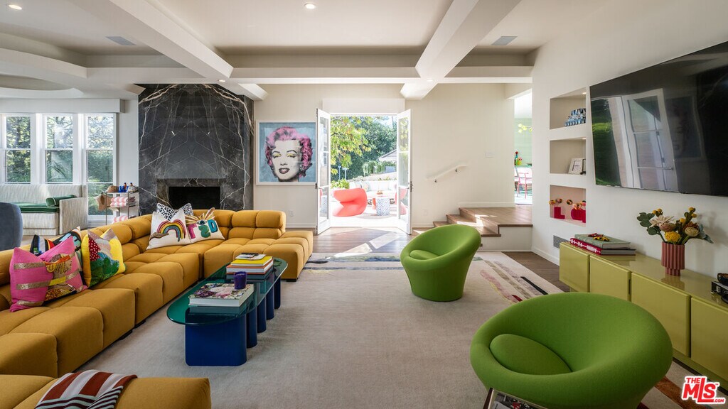 Beverly Hills Tennis Court Estate property unlike anything you've seen, hidden behind walls, gates & mature trees on over an acre of perfectly manicured park-like grounds in the prime foothills of Beverly Hills. Hosting a rich & elite Hollywood pedigree, up a long driveway on a knoll basking in the sun, sits this entirely reimagined home, colorfully curated by designer Angie Socas Coppel. Each room with its own joyful, lively and inspiring theme with an open floor plan with multiple spaces for entertaining. The main floor features large living spaces, a renovated chef's kitchen with family room, staff quarters and office opening to an outdoor lounge, with Dining and Living rooms opening to the pool and grounds. The 2nd-story consists of three generous bedrooms plus a full primary suite with separate office, lounge, dual bathrooms, dual walk-in closets & French doors that open to a private terrace overlooking the stunning grounds. The sprawling grounds hold a guest house, fully equipped gym, a large pool with separate spa, sauna and a serene, private & sunken championship tennis court. The motor court has parking for up to 25 cars and the property is dialed in with a smart house system, full cameras & security complete with hotel like amenities throughout. A prime compound in one of the world's most desirable locations. MLS# 25612341