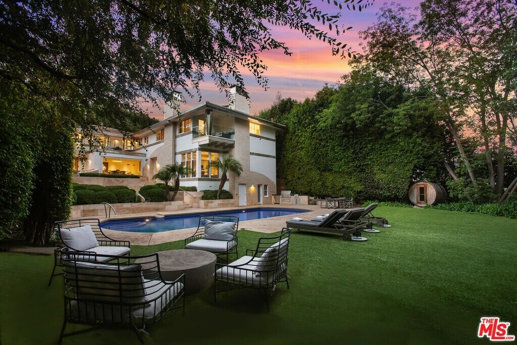 Beverly Hills Tennis Estate property unlike anything you've seen, hidden behind walls, gates & mature trees on over an acre of perfectly manicured park-like grounds in the prime foothills of Beverly Hills. Hosting a rich & elite Hollywood pedigree, up a long driveway on a knoll basking in the sun, sits this entirely reimagined home, colorfully curated by designer Angie Socas Coppel. Each room with its own joyful, lively and inspiring theme with an open floor plan with multiple spaces for entertaining. The main floor features large living spaces, a renovated chef's kitchen with family room, staff quarters and office opening to an outdoor lounge, with Dining and Living rooms opening to the pool and grounds. The 2nd-story consists of three generous bedrooms plus a full primary suite with separate office, lounge, dual bathrooms, dual walk-in closets & French doors that open to a private terrace overlooking the stunning grounds. The sprawling grounds hold a guest house, fully equipped gym, a large pool with separate spa, sauna and a serene, private & sunken championship tennis court. The motor court has parking for up to 25 cars and the property is dialed in with a smart house system, full cameras & security complete with hotel like amenities throughout. A prime compound in one of the world's most desirable locations. MLS# 25612341