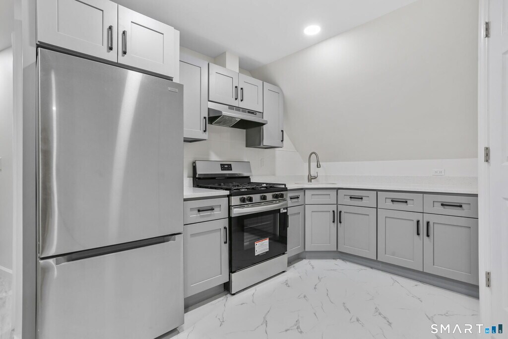 Call for Availability - Fully remodeled 3-bedroom, 1-bath 3rd-floor apartment offering a clean, modern feel throughout. The unit features new flooring, fresh paint, and an updated eat-in kitchen with brand-new appliances. Enjoy three comfortable bedrooms, an updated full bath, and a bright living area. One off-street parking space included. Convenient location with easy access to downtown Bridgeport, public transportation, major highways, schools, and local shopping. MLS# 24155558