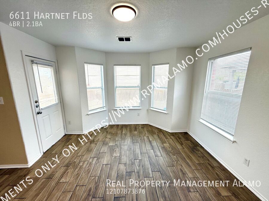 **MOVE IN SPECIAL- 50% OFF FIRST FULL MONTH'S RENT** Welcome to 6611 Hartnet Fields, a spacious two-story residence situated on a desirable corner lot in Converse, TX. This 4-bedroom, 2.5-bathroom home blends function and design with an open layout and thoughtful features throughout. Step into a welcoming interior that offers central air and heat, creating year-round comfort. The kitchen is a true centerpiece with an island, pantry, breakfast bar, built-in microwave, stove/oven, dishwasher, and generous workspace for culinary inspiration. The upstairs loft provides a flexible second living area—ideal for entertainment, work, or relaxation. The primary suite offers a garden tub, stand-in shower, and walk-in closet for a private retreat. A two-car garage adds convenience, while washer/dryer connections make daily living effortless. Outside, enjoy a fully fenced backyard with room to entertain or unwind. Located in Converse, this home offers easy access to local amenities and major thoroughfares, making everyday commuting a breeze. Experience spacious living, versatile interiors, and a location that connects you to everything you need. For more information, contact us at . Schedule a showing TODAY!: Apply here: RPM Alamo is proud to offer deposit-free living to qualified renters through Obligo! We understand that moving costs can add up, so we want to extend financial flexibility to our residents. When you move in with us, you can skip paying a security deposit and keep the cash for activities you care about. Learn more about the benefits of deposit-free living with Obligo’s brochure or on their website. All Real Property Management Alamo residents are enrolled in the Resident Benefits Package of their choice Tier 1 $55 or Tier 2 $70 monthly which includes HVAC air filter delivery (for applicable properties), credit building to help boost your credit score with timely rent payments, $1M Identity Protection, utility concierge service making utility connection a breeze during your move-in, our best-in-class resident rewards program, and much more! More details upon application. ***The information contained in this advertisement is subject to change. The terms of any lease, should you execute a lease with RPM, are found solely in the Lease Agreement itself, along with any applicable addenda. Situations that may affect change include, but are not limited to an applicant's credit rating which may affect the required security deposit amount, and new information provided to us regarding a unit that we did not know at the time we placed this advertisement.*** $350 Pet Fee Non Refundable $50 Pet Rent 2 Car Garage 2 Story 2.5 Bathrooms 4 Bedrooms Built In Microwave Central Air/Heat Converse Tx Corner Lot Fenced Backyard Garden Tub Island In Kitchen Stand In Shower Upstairs Loft Washer/Dryer Connections