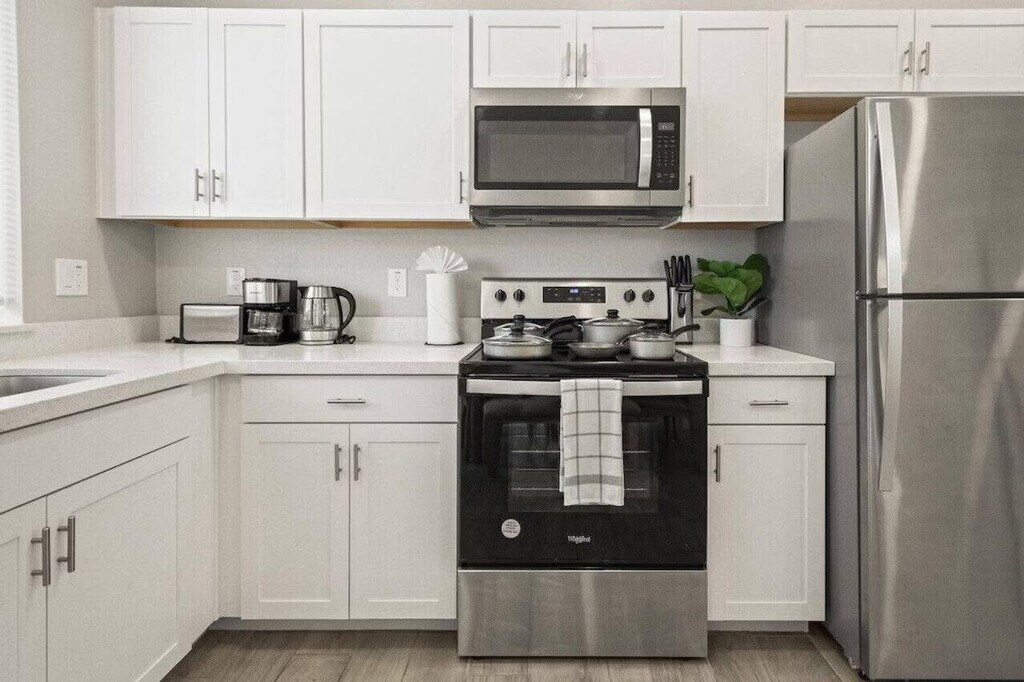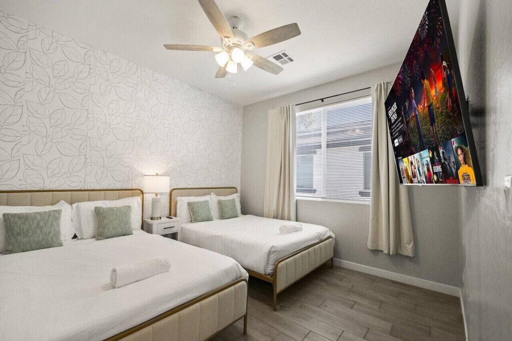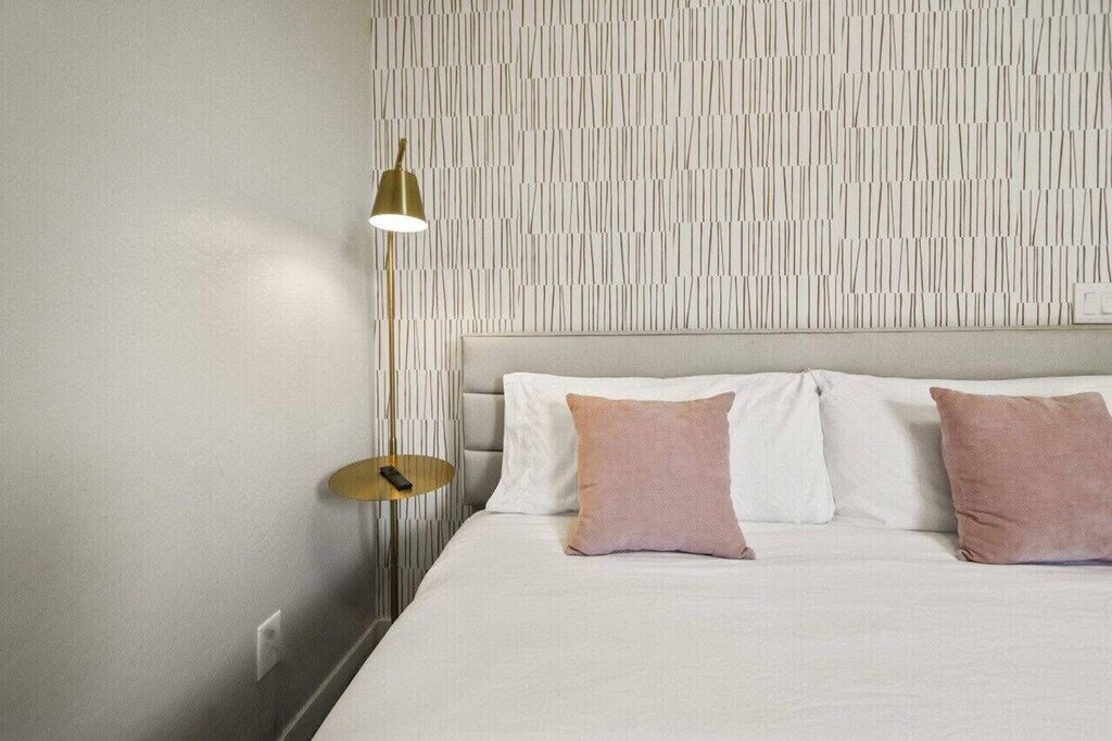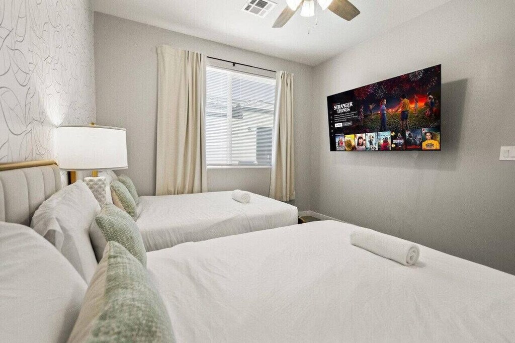 Enjoy a stylish and spacious retreat in the heart of Glendale! Feel at home in this modern 2-bedroom, 2-bathroom apartment. This beautifully curated apartment offers a dreamy king-size bed, luxury Beautyrest Hybrid mattresses, and a chic design. The open-concept living and dining area features wood accents and contemporary finishes. The fully stocked kitchen includes a stove, oven, fridge, microwave, dishwasher, coffee maker with coffee essentials, toaster, kettle, full dinnerware, cookware, and baking trays. The bathrooms are well-equipped with a shower, bathtub, toilet, sink, mirror, towels, hairdryer, and essential toiletries. Entertainment options include a 70" 4K smart TV in the living room and HDR smart TVs in both bedrooms. A foldable crib is available. Additional towels can be arranged upon request in advance. This apartment is centrally located near State Farm Stadium for NFL games, concerts, and events, and it's also minutes from Westgate, Topgolf, shopping, dining, and major roads. A Minut noise monitoring device is in the unit. Essentials, including towels, shampoo, conditioner, soap, and dishwashing essentials, are provided in a starter quantity only and are not unlimited. Toiletries and other consumable supplies are provided as a one-time set-up at check-in, with no refills or replacements offered during your stay. [SI]