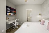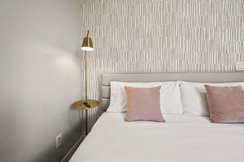 The advertised rate of $4,537/month is the lowest available price, based on a 30 day(s) stay with a move-in date of July 8, 2026. Rates vary depending on the duration of stay, season, and other parameters. For exact pricing and additional pricing components, please visit our website and enter your desired move-in and move-out dates. The rate is applicable when billed upfront; it can be higher if billed in multiple payments. Feel at home in this stylish and spacious retreat in the heart of Glendale. This modern 2-bedroom, 2-bathroom apartment offers family-friendly comfort and style. This beautifully curated apartment features a dreamy king-size bed, luxury Beautyrest Hybrid mattresses, and a sleek modern design. The open-concept living and dining area features wood accents and contemporary finishes. The fully stocked kitchen includes a stove, oven, fridge, microwave, dishwasher, coffee maker with coffee essentials, toaster, kettle, full dinnerware, cookware, and baking trays. Enjoy two clean, well-equipped bathrooms with a shower, bathtub, toilet, sink, mirror, towels, hairdryer, and essential toiletries. A 70" 4K smart TV is available in the living room, and a 55" HDR smart TV is in the king-size bedroom. The second bedroom has two full beds and a 60" HDR smart TV. An air mattress is available, but no bedding is provided. A foldable crib, shelf space, reading lamps, full blackout curtains, and an ironing set are also included. An in-unit washer and dryer are available for your convenience. Free parking and high-speed Wi-Fi are included. Enjoy a prime location near State Farm Stadium for NFL games, concerts, and events, and minutes from Westgate, Topgolf, shopping, dining, and major roads. A Minut noise monitoring device is in the unit. Essentials, including towels, shampoo, conditioner, soap, and dishwashing essentials, are provided in a starter quantity only and are not unlimited. Toiletries and other consumable supplies are provided as a one-time set-up at check-in, and refills or replacements are not offered during your stay. Interior photos represent the layout and style, but individual units may vary slightly in furnishings or orientation. [SI]
