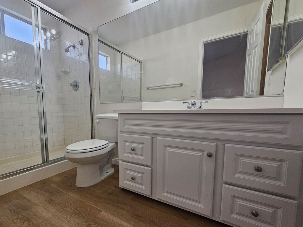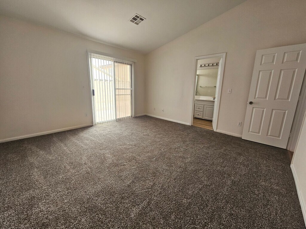 Discover this adorable, single-story house featuring an open and airy floor plan highlighted by vaulted ceilings. The functional kitchen includes a cozy breakfast nook, while the master suite offers a private retreat with its own sliding glass door leading to the patio. Complete with a dedicated laundry room and a prime location near shopping and freeway access, this home offers the perfect blend of style and convenience.