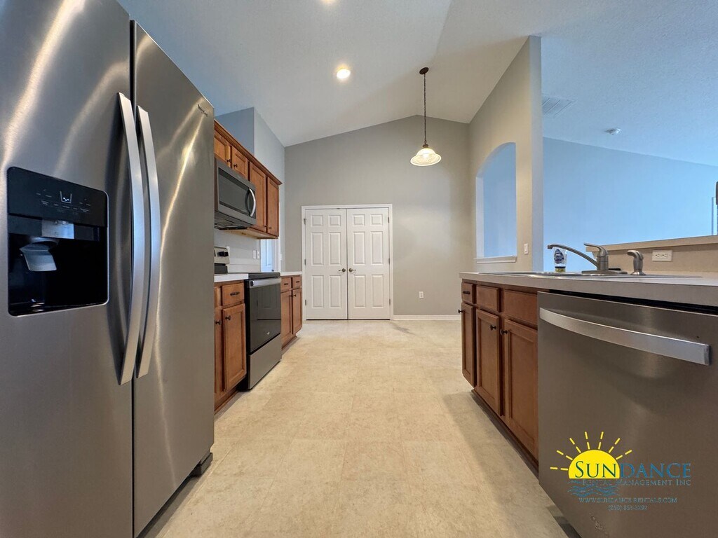 This spacious 3-bedroom, 2-bathroom home offers a desirable split floor plan with beautiful natural light throughout. The large kitchen features sleek stainless steel appliances, an island, and an open flow into the eat-in area and family room, creating the perfect space for entertaining. Freshly painted with newer carpet, this home is move-in ready. The expansive primary suite boasts an oversized walk-in closet and a luxurious en-suite bathroom with a double vanity, a soaking tub, and a separate shower. Both additional bedrooms across the home are generously sized with ample closet space. As a resident, you'll enjoy full access to Holley by the Sea amenities, including tennis courts, pools, a fitness center, a basketball court, a beach house event space, and even an RV and tent campground. The community also offers youth programs, before and after-school care, and summer camp options. Small dog (no cats) are accepted with a non-refundable $250 per pet plus a $50 admin fee (subject to owner approval) In addition to the rental amount, all Sundance Rental Management residents are enrolled in the Resident Benefits Package (RBP) for $25.00/month which includes liability insurance, credit building to help boost the resident’s credit score with timely rent payments, and much more! The benefits can be found on our website under Tenant FAQ.