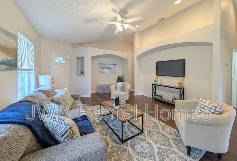 This 3-bedroom, 2-bath home blends style and function with a kitchen featuring hardwood cabinets, granite countertops, a breakfast bar, and modern appliances. Enjoy an open floor plan with hardwood flooring, ceiling fans, and comfortable furnishings. Relax on the porch or patio overlooking the yard, with a 1-car attached garage for added ease. Just minutes from Gateway Town Center, Lonnie C. Miller Park, and FSCJ North Campus. This home is HUD eligible. Lease terms available: 24 month; 36 month. Schedule a showing today to explore this home! JWB Rental Homes has committed $16 million to our renters through the JWB HomeStep Program. Earn thousands to go towards the purchase of a new home, just by renting with JWB! Payment processing fees apply to all rent transactions. This includes $1.50 on all ACH transactions, 2.55% +.25 cents for all credit or debit transactions (not to exceed $35), and $3.95 on all Moneygram transactions. These processing fees are set by and paid to the collecting financial institution; JWB does not control or benefit from these fees in any way.
