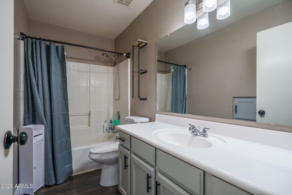 Prime Glendale location about a mile to Westgate Entertainment District and State Farm Stadium! Enjoy easy freeway access and a vibrant area filled with shopping,dining,and entertainment just minutes away. Inside the home you'll find a 4-bed,3-bath home that backs to a lush greenbelt and offers a bright living room with soaring vaulted ceilings and a cozy fireplace. The updated kitchen features granite counters and stainless steel appliances,while the spacious primary suite includes dual sinks,a separate tub and shower,and a walk-in closet. A low-maintenance yard with a covered patio and a 3-car garage complete the package. Spend your weekends exploring nearby golf courses,hiking trails,and all the excitement of Westgate,from pro sports and concerts to top-rated restaurants and entertainment venues.