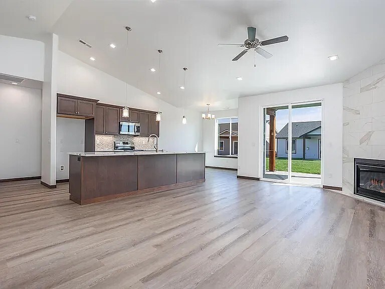 This lovely new home includes washer, dryer, refrigerator, dishwasher, range and microwave. There is a fireplace, covered patio on the back of the house and a fenced yard. Landscape maintenance is included in the rent. Garbage, electric, gas, phone and internet are the tenants responsibility. No dogs or cats. New Construction, single family home on a quiet street. Has a covered patio, fenced yard and new landscaping.