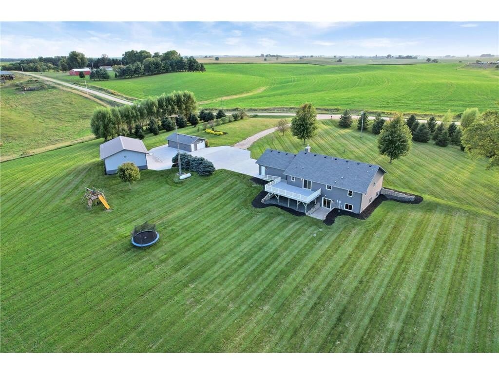 **RENTAL LISTING** Welcome to 66182 310th Ave - a private 8.82 acre property featuring clean landscaped grounds, a quality built 3600 SQFT home, and well-maintained storage buildings perfect for hobbyists, contractors, or anyone needing extra space. The 4bed, 3bath home offers a functional, open concept layout with everything you need on one level. The kitchen features solid wood cabinetry, quartz countertops, & stainless appliances, and the dining area opens out to a large minimum maintenance deck that overlooks the beautiful east facing horizon. The main floor is complete with a spacious living room featuring a vaulted ceiling, gas fireplace, & a built-in speaker system - two bedrooms including a primary suite complete with a private 3/4 bath & walk-in closet - and a laundry room equipped with a sink and plenty of storage. The lower level walk-out is complete with a family room, two large bedrooms, a full bath, and a bonus room. The house was recently updated with new siding, window wraps, and the roof is only 5 years old. The home is also equipped with geothermal system, offering high energy efficiency and cost savings. The attached two car garage is insulated and has direct access to the basement. There's an additional 18x32 detached tandem two-stall garage, with drive-thru doors, as well as a 42x30 pole building that has oversized doors, & a new concrete floor with a drain. New concrete driveway too! You get to enjoy all of these modern conveniences while also being surrounded by beautiful country views, meandering walking trails, and all kinds of wildlife. This property is located within the Lake City School District and is only 35 minutes from Rochester. You must see in person in order to appreciate all this property has to offer! Property also offered for sale. See MLS #6815727