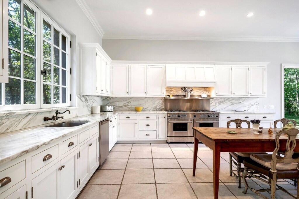 Consisting of two single and separate properties with a combined acreage close to 5 acres, offering beauty, privacy, and grand entertaining possibilities. This symmetrically laid out elegant compound abutting a 200+/- acre land preserve consists of an expansive 10,000 SF+/- main residence, 7 bedrooms, 5 full and 1 half bathrooms, a Givenchy-inspired guest house, a special 5 car carriage-style garage with basement, room for tennis and sensational farm and golf course views. The property is conveniently located between all major hamlets such as Bridgehampton, Sag Harbor, East Hampton, and Southampton with easy access to the most beautiful ocean beaches. In close proximity to prestigious golf courses such as Atlantic (1 mile), The Bridge (3 miles), Shinnecock Hills, and The National. The main house offers soaring ceilings of 13' to 30' in height. The home's elegant interior contains graceful common parlors surrounded by oversized, handmade mahogany windows and antique French doors, flooding the rooms with natural light and impressive views of the courtyard. Custom millwork is present throughout the home, alongside exquisite 200-year-old honed marble tile, limestone, and French oak wood flooring as well as 4 wood-burning fireplaces with antique marble and limestone surrounds. An old school, state-of-the-art chef's kitchen comes fully equipped with two SubZero refrigerators, 3 dishwashers from Bosch/Fisher and Paykel, built-in ice machine, wine cooler, and Bluestar 8-burner commercial stove, as well as butler's pantry, wet bar and dog bath. The upper-level landing gives way to a spacious primary suite, graced by unobstructed afternoon light, a sitting room with fireplace, and luxurious, very spacious primary bathroom with special feature marble soaking tub. On the same level, you will find 3 additional, gracious guest bedrooms. The property offers cherry, apple, and hibiscus trees surrounding a recently renovated 20' x 40' heated gunite pool with blue stone edging. Enjoy mature landscaping and meticulous gardens with boxwoods, hydrangeas, and ornamental trees dotting the ample lawn space. Two blue stone covered patios with unrivaled views of the expansive terrain make up the exquisite outdoor living and dining space. This and much more, offered co-exclusively. Rental Terms: June: $150,000 February: $30,000 May: $30,000 August - Labor Day: $250,000 July - Labor Day: $450,000 July: $200,000 April: $30,000 March: $30,000 January: $30,000