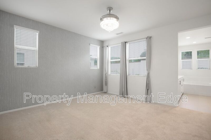 ***Apply Now!*** Stunning 5-bedroom 3-bathroom home in one of San Marcos’ most desirable gated communities, Vientos/Terracina neighborhood of Rancho Tesoro! This gem offers bright, thoughtfully designed living spaces and an open-concept layout filled with natural light. The spacious living area flows into a modern kitchen featuring a large quartz island, white shaker cabinetry, custom tile backsplash, and stainless-steel appliances. The main level also includes a full bathroom and a convenient first-floor bedroom, ideal for guests or multi-generational living. Upstairs, you’ll find a versatile loft and an expansive primary suite complete with a spa-inspired bathroom and custom walk-in closet. Two additional bedrooms, a full laundry room, and abundant storage round out the upper level, providing comfort and functionality for a variety of lifestyles. The private, low-maintenance backyard is designed for relaxation and entertainment, offering pavers, drip irrigation, and a soothing jacuzzi spa! This home comes equipped with solar panels, providing valuable energy savings and helping to significantly reduce monthly electrical bills. Enjoy the comfort of modern living with the added benefit of lower utility costs year-round. Additional highlights include energy-efficient appliances, upgraded flooring, Lutron smart lighting, and an extra deeded parking space out in front. Residents enjoy resort-style amenities such as a community pool, BBQ area, playground, and scenic walking trails, all close to top-rated schools, shopping, dining, parks, and hiking. Amenities: community parks, Solar Panels, Community Pool, Walking trails, Spa