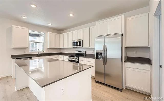 Welcome to this stunning brand-new home in Sky Ranch, located at 662 N Clubview St. From the moment you arrive, you’ll notice the charming curb appeal and inviting front porch that set the tone for what’s inside. This spacious residence offers 4 bedrooms and 2.5 bathrooms, thoughtfully designed with modern living in mind. The main level showcases luxury vinyl plank flooring and an open-concept layout, highlighted by a gourmet kitchen featuring quartz countertops, a generous island, a walk-in pantry, and brand-new energy-efficient appliances. Smart home features, including a thermostat, motion sensors, and dimmable lighting, add comfort and convenience throughout. Upstairs, the primary suite provides a private retreat with a spa-inspired 5-piece bath and walk-in closet. Three additional bedrooms, a full bath, and a convenient laundry room with built-in shelving complete the upper level, while the unfinished basement offers flexibility for storage, a home gym, or future expansion. Step outside to a large extended covered patio—perfect for BBQs, entertaining, and outdoor dining—while enjoying stunning mountain views from the front upstairs bedroom. With professional landscaping and private fencing soon to be completed, this home is move-in ready. Ideally located just steps from community parks, playgrounds, and trails, as well as Sky Ranch Academy (K–12 charter school), it also provides easy access to I-70, DIA, Aurora, and Denver. Single Family Residence MLS# 4587876