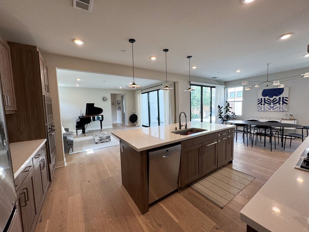 Sought after community, great schools, and an exquisitely appointed, well-cared for 4 bed 3.5 bath residence includes one bed/bath on entry level. Upper level includes private primary suite with generous walk-in closet, shower with separate soaking tub, 2 additional large bedrooms plus a great room to hang-out and enjoy. Easy care plank flooring throughout first level, stone and tile baths and carpet in bedrooms. Spacious rooms compliment this natural light-filled, open floor plan. Seating area on kitchen center island, built-in wall oven, micro, rich-toned wood cabinetry. Private, fenced, exterior with entertainment area includes gas fire-pit, fireplace, portable gas grill and no-water turf yard. Attached, 2-car garage. Exceptional location within nearby, sought after Del Mar Union and San Dieguito schools district. Pacific HIghland community and Village shopping, the beautiful Coastal Pacific Ocean, walking trails, community pool all make this an amazing community with convenience and naturally beautiful surroundings. Terms: lease Tenant pays: electric , gas, phone, cable, internet and all utilities. Property has solar so electric bill is held by owner and charged back to tenant. Pet can be considered with breed and size restrictions- a pet screening application ($25 fee) and pet insurance required. Renter's insurance required Application fee: $45 per adult Must have gross income of 3 times the rent, good credit, and good rental history to qualify This property is professionally managed by Ascent Property Management CA DRE License #01992010