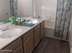 You will love this Granville home situated on an interior corner lot! Spacious open split floor plan. Fresh Paint in & out! Huge 3 car garage is 24' deep with 8' doors. Covered front porch,tile entry,laminate wood floors in great room and hallways. Vinyl laminate in bathrooms,new carpet in bedrooms! Great room and formal dining area has 2 ceiling fans & french doors to the extended covered patio. Pantry,breakfast counter + informal dining off kitchen. Granite counters. Large private master bedroom,walk-in closet,dual sinks,vanity area,snail shower + linen closet. Laundry room with sink,cabinets and counter space. 2 more bedrooms with ceiling fans. Full guest bath with dual sinks and linen closet. Enjoy the back yard with mature trees,covered patio,ceiling fans and flagstone walkways,front and back. The Granville community has the best amenities and convenient to shopping,restaurants! Small pet,upon approval.