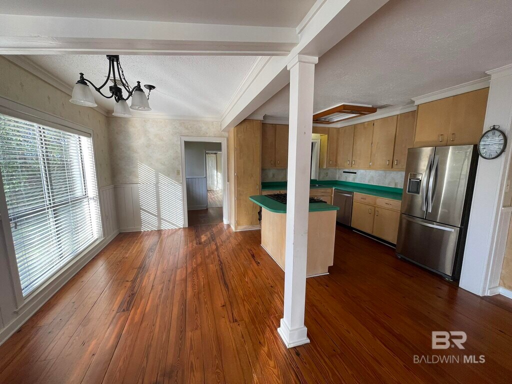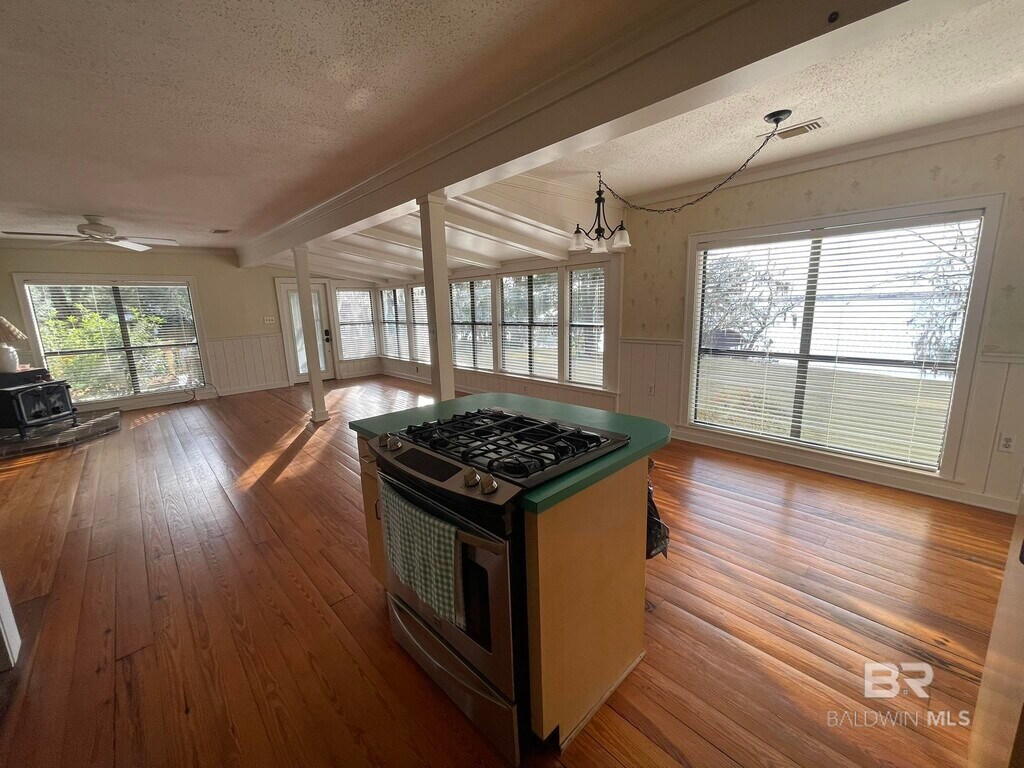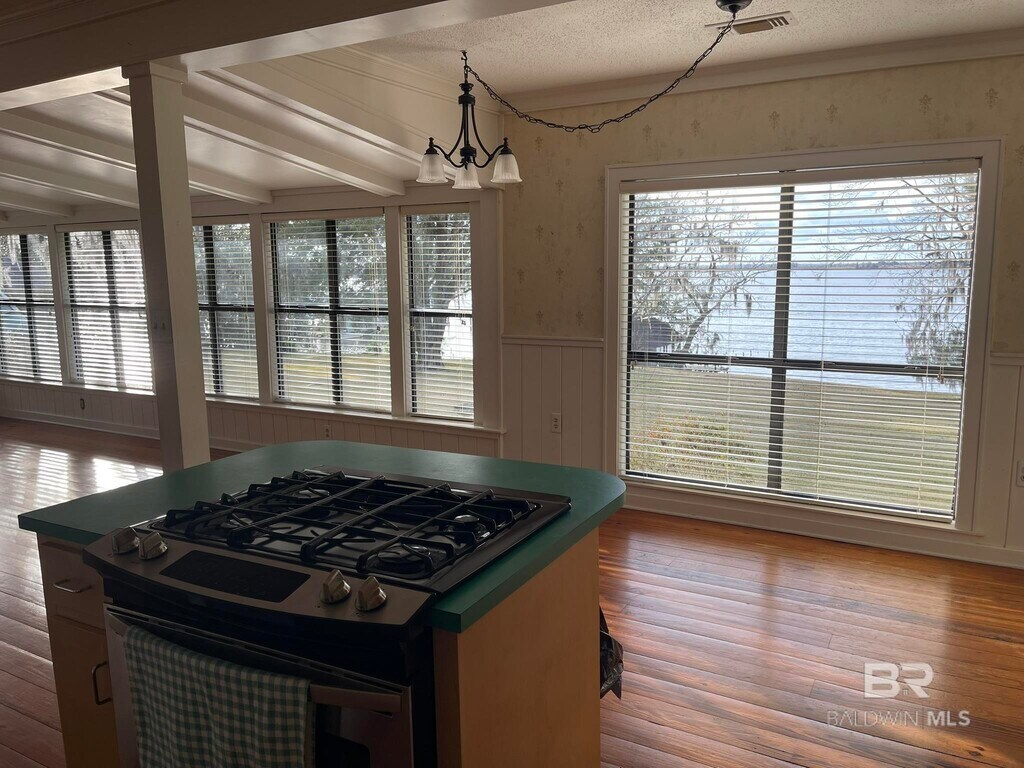 The view is everything with this 3-bedroom,2.5 bath home on the water with over 3 acres of land!! Picturesque scenery with mossy oaks and views of the water from just about every spot. Spacious and open living room,kitchen,and dining combo with large windows allowing tons of natural light and water views. Kitchen features stainless steel appliances including a gas range,refrigerator,and dishwasher. Living room showcases and antique working wood burning stove. Massive primary bedroom that is the entire upstairs with 3 walk-in closets and a primary bath. Large family room with a wood burning brick fireplace. Beautiful wood floors throughout the home with LVP in the family room and carpet in upstairs closets. Large laundry room with washer and dryer hookups,as well as a standalone shower. Huge back yard that overlooks the bluff/water. This home has so much character that you have to see it for yourself. Pets negotiable with owner approval. 50 lbs. weight limit,max of 2 pets. $300 refundable pet deposit per pet.