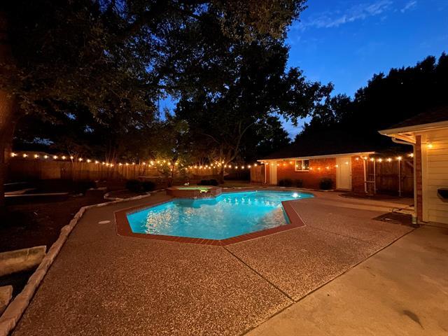 This beautifully maintained single-story home offers five bedrooms, three full bathrooms, and a backyard oasis with a pool and spa on a lush 0.3-acre lot. Designed for both comfort and function, the open floor plan features hardwood floors, plantation shutters, abundant natural light, and thoughtfully designed living spaces. The primary suite overlooks the backyard and includes dual sinks, a walk-in closet, and a private bath. A separate guest suite with its own full bathroom is ideal for multi-generational living, nanny quarters, office or guests. Three additional bedrooms, each with their own closet, share a third full bathroom. The living room offers garden and pool views, while the formal dining room connects easily to the kitchen. A dedicated laundry room with washer, dryer, and ample storage, along with attic spaces. The kitchen is designed for everyday living and entertaining with stainless steel appliances including double ovens and a gas cooktop, two refrigerators, a separate freezer, a spacious island, and a walk-in pantry. The backyard is a true retreat with a sparkling pool, an elevated spa with waterfall feature, and beautifully landscaped surroundings. There are grassy play areas perfect for children or pets, and additional space for a vegetable garden. String lighting and pool illumination create an inviting setting for evening gatherings. The property also includes a detached two-car garage and a pool closet for extra storage. Additional highlights include a whole-home water filtration system with reverse osmosis in the kitchen, and the option for partial furnishings if desired. This home is located in a warm, family-friendly neighborhood within an excellent school district, including Plano West High School, ranked in the top one percent nationally. The property is conveniently close to shopping, dining, grocery stores, houses of worship, and major amenities. This is in the Far North Eruv. No smoking is permitted.