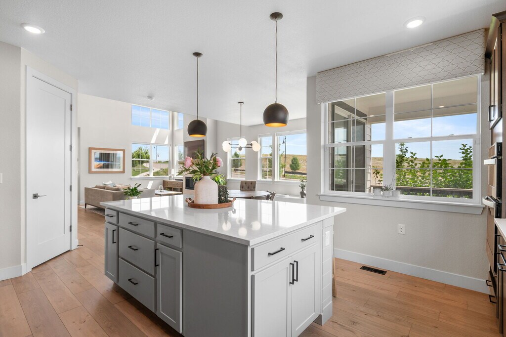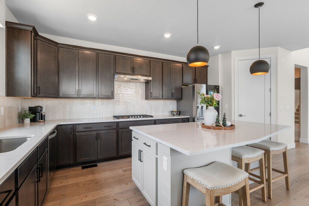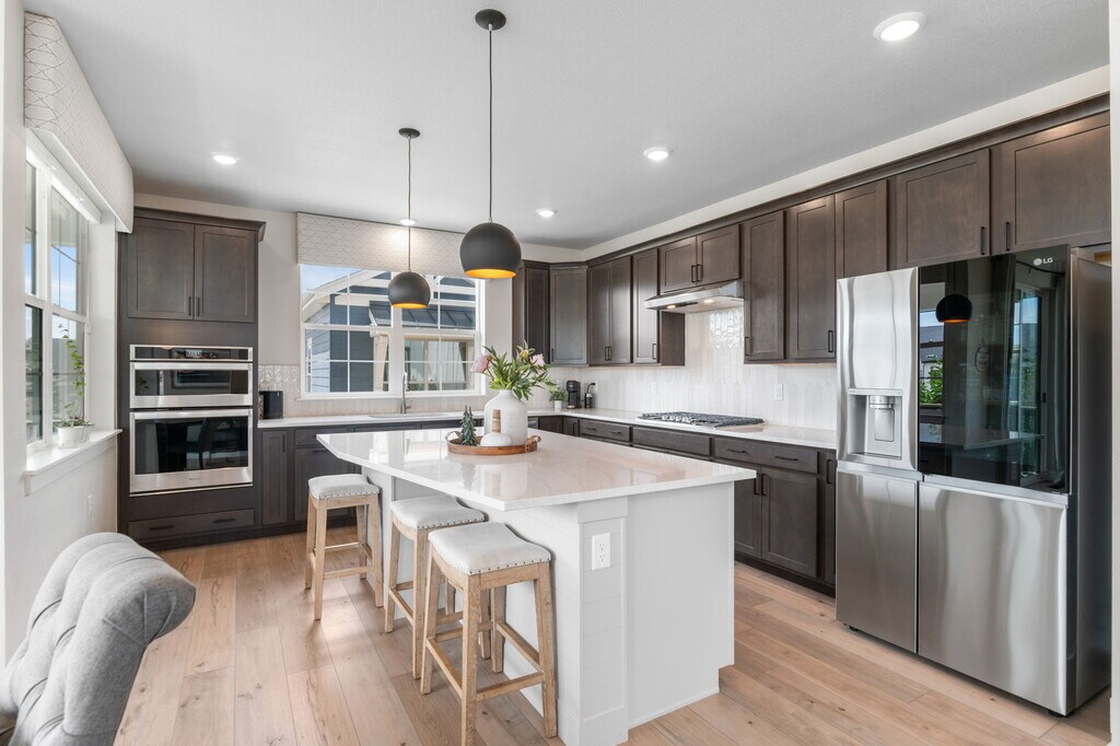 MODERN FARMHOUSE in UPSCALE SILVER LEAF COMMUNITY Experience elevated living in this beautifully upgraded modern farmhouse in Silver Leaf, where contemporary style meets easy, low-maintenance comfort. Once the community's model home, this residence features high-end finishes and carefully selected design elements throughout. The striking black-and-white exterior sets the tone, while soaring ceilings and abundant natural light create a bright, welcoming atmosphere inside. The thoughtfully designed two-story layout includes a convenient main-level bedroom with a walk-in closet—ideal for guests, a home office, or multi-generational living. At the heart of the home is an open and inviting great room with vaulted ceilings and an elegant chandelier, seamlessly connected to the kitchen and dining areas. The chef-inspired kitchen offers upgraded 42” cabinetry, 3cm quartz countertops, designer tile, a shiplap-wrapped light gray island, and a generous walk-in pantry—perfect for everyday living and entertaining. Upstairs, a dramatic catwalk overlooks the great room and separates the spacious primary suite from two additional bedrooms and a full bath. The primary retreat features a custom accent wall, private en-suite bathroom, and large walk-in closet. The finished basement expands your living space with two more bedrooms, a full bath, and a sizable recreation area—ideal for gatherings, hobbies, or relaxing. One of the bedrooms can easily serve as a home gym, office, or flex space. Step outside to a covered patio and enjoy effortless indoor-outdoor living. Silver Leaf offers a modern, active lifestyle with open green spaces, low-maintenance yards, and included lawn care and snow removal. Located just minutes from Littleton, Foothills Recreation Center, nearby trails, bike paths, and Downtown Littleton, this home provides the perfect balance of convenience, comfort, and community living. No smoking and no cats, please. One small dog may be considered on an individual basis. Please visit the Mountain Haven Property Management website to complete an application and schedule a showing.