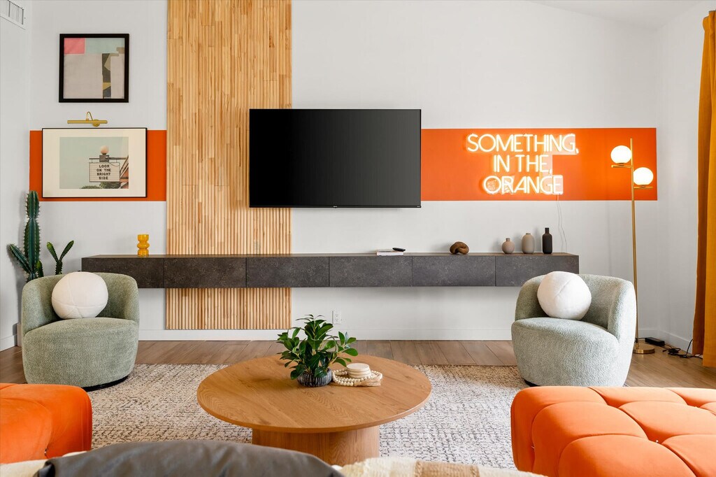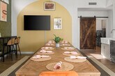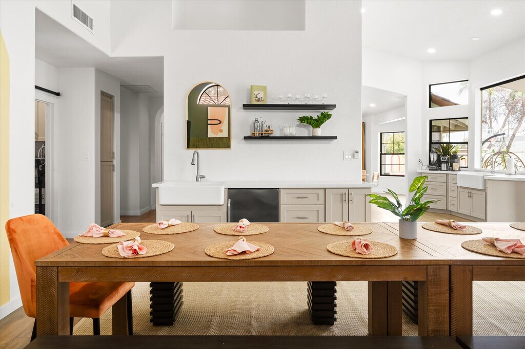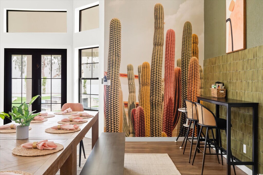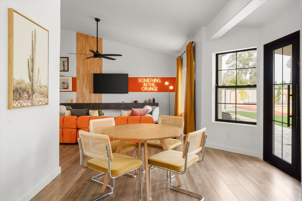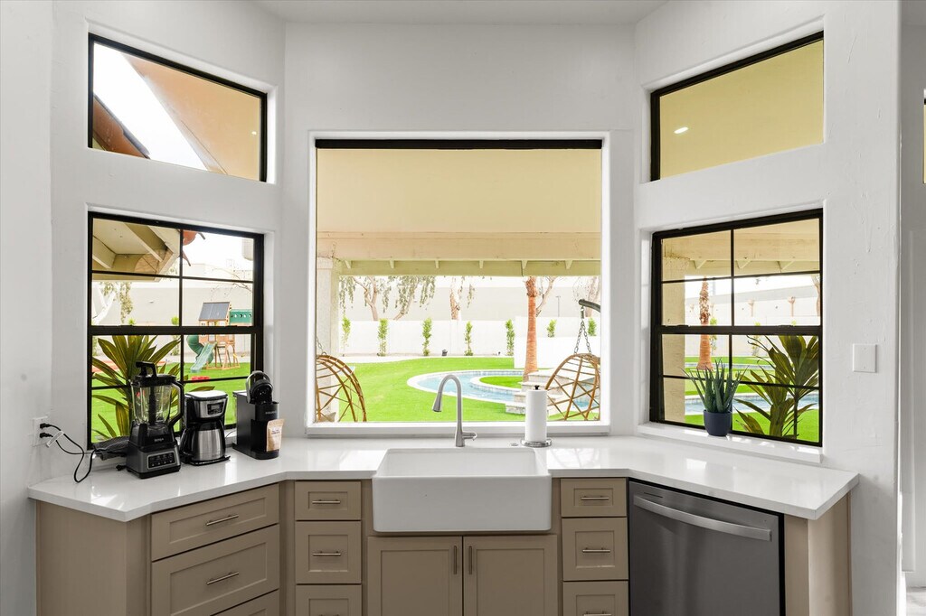 Feel at home in this 6-bedroom, 5-bathroom Glendale, Arizona home. This one-of-a-kind property features a spacious main house and a separate casita and comfortably sleeps up to 20 guests, making it perfect for large families, multi-family vacations, or group retreats. Outside, a private resort awaits, featuring a private pool and lazy river, sportscourt for basketball and pickleball, a kid’s playground, fire pit, outdoor patio and dining area, outdoor bar and BBQ grill, putt putt, corn hole, and giant Jenga. Inside, the main house offers generous living space, a fully equipped kitchen, and multiple hangout zones, while the casita provides added privacy with its sleeping quarters and amenities. The chef’s kitchen is fully stocked with high-end stainless appliances, a large refrigerator, ample cabinetry and cooking space, and a coffee maker with Keurig and drip options. Up to 2 dogs are allowed for $125 per stay. Tucked away in a quiet neighborhood yet just minutes from shopping, dining, and top attractions, this home brings together the best of relaxation, recreation, and convenience. Nearby attractions include Sahuaro Ranch Park, Westgate Entertainment District, State Farm Stadium, Desert Diamond Arena, and Cerreta Candy Company. For dining, consider Arrowhead Grill, Ajo Al's Mexican Cafe, The Sicilian Butcher – Peoria, The Vig – Park West, and Thirsty Lion Gastropub. Check-in is at 4pm and check-out is at 10am. No cats are allowed. Guests must be 25 years or older to book this property. No parties are allowed—violations may result in immediate termination of the stay. An exterior camera is installed solely to monitor the cleaning team for quality and security purposes. Parking is available in the driveway and in front of the garage for a maximum of 9 cars. Guests are required to complete a simple screening process within 48 hours of booking confirmation. Guests will be asked to sign a Rental Agreement that includes agreeing to the rental terms and conditions, providing a valid government-issued ID and a matching credit card before check-in, and paying a non-refundable $60 damage waiver. Starting November 1st, 2025, the lazy river can be heated for an additional $100 per night of your stay, and it must be heated for the entire length of your stay with at least a 3-day notice before your arrival. A dedicated workspace is available. [SI]