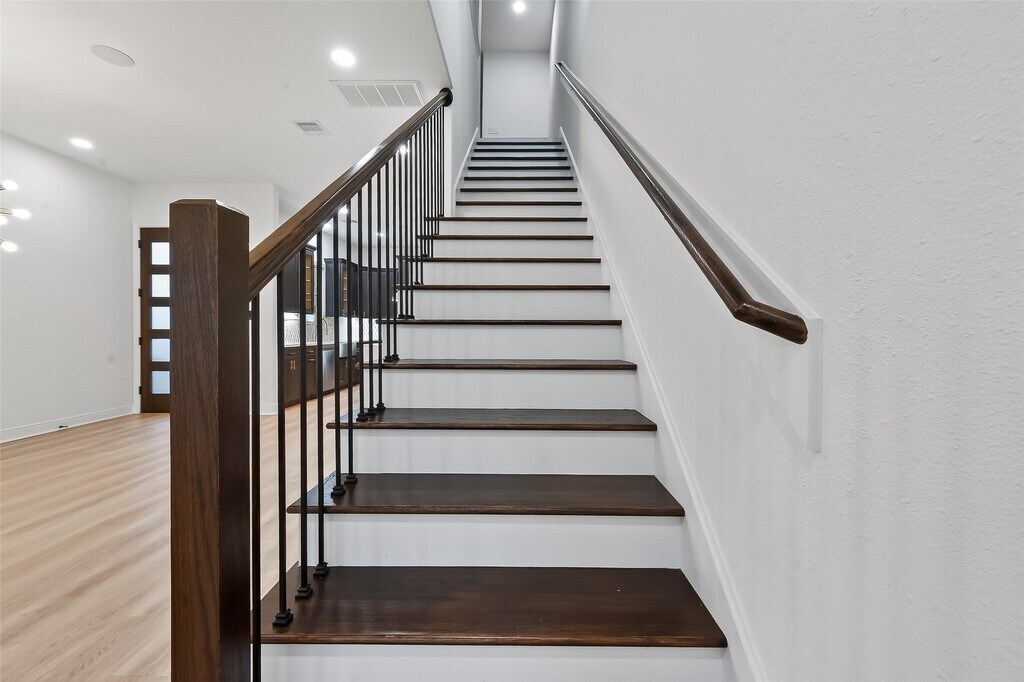 Welcome to this modern,spacious home designed for effortless living. The open floor plan showcases high-end finishes throughout,creating a seamless flow from room to room. Sunlight fills the kitchen and family areas on the first floor,highlighting the gorgeous chef’s kitchen complete with a large island,coordinating backsplash,and under-cabinet lighting. Walk up the beautiful hardwood staircase to the second floor,where comfort and craftsmanship come together. The level opens to an oversized primary bedroom featuring elegant coffered ceilings,recessed lighting,and a remote-controlled ceiling fan for year-round comfort. The spa-inspired primary bath showcases brushed-gold finishes,double sinks,an oversized walk-in shower,and a spacious walk-in closet designed for storage and organization. The garage features an exceptional custom lighting installation designed to beautifully accent your vehicle and elevate the space for a home gym or workshop. Covered patio and nice yard. MLS# 36713995