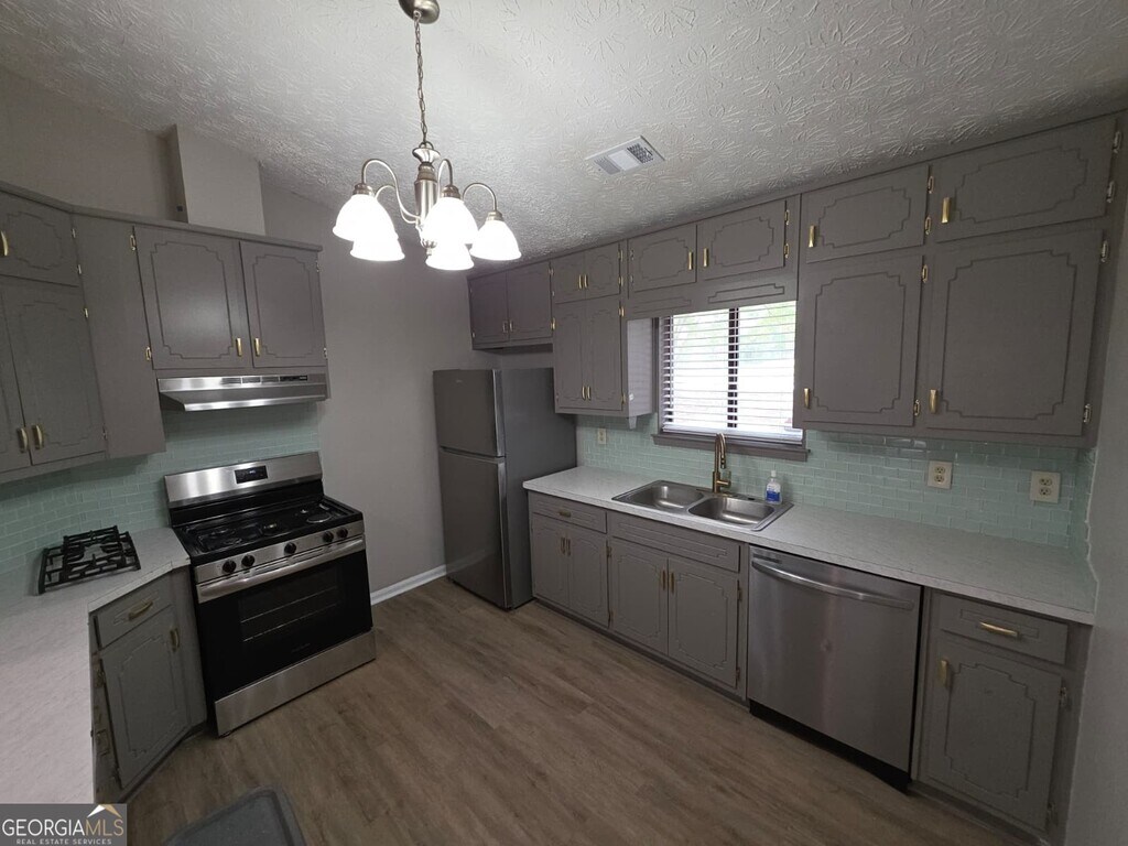 Step into comfort and style with this beautifully renovated ranch-style home located in the well-established Creekwood Estates community in Rex. Boasting 3 spacious bedrooms and 2 fully updated bathrooms, this home offers a blend of modern upgrades and timeless charm. Enjoy all-new luxury vinyl plank flooring throughout the main living areas and bedrooms, creating a sleek, cohesive feel. The updated kitchen features refinished cabinetry, a stylish tile backsplash, sleek countertops, and stainless steel appliances-perfect for both casual meals and entertaining. A breakfast bar adds a cozy spot for morning coffee or evening conversations. The open-concept layout fills with natural light, offering easy flow between the living and dining areas for everyday living or hosting guests. Both bathrooms have been thoughtfully redesigned with elegant tile flooring, updated vanities, and contemporary lighting. Outside, the newly built back deck provides the perfect setting for relaxing or enjoying a sunny afternoon in your private backyard. Located minutes from shopping, dining, and major highways, this home combines convenience with comfort. Don't miss the chance to make this move-in-ready gem your own in the heart of Creekwood Estates.
