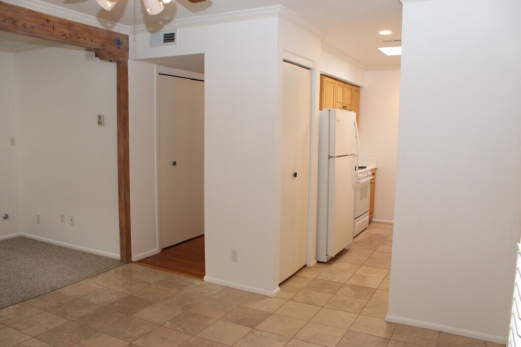 This immaculate condo is now available to show and move into in early March 2026 on Approved Credit. NO Smoking permitted. No Pets permitted. Enjoy living just 5-6 blocks north of the Downtown Plaza area in the gated compound of El Matador. This property is located in the back of the compound which is quieter, but this unit has its own private carport/parking area. You don't share parking in the parking lot like most of the other units have. This unit has tile floors in dining room & kitchen and carpet in living area & bedrooms. Full bath at end of hall. Both bedrooms are good sized. A king could fit in the front bedroom but a queen bed has been placed in each bedroom previously with plenty of extra room for end tables or dresser. Very nice kitchen with built in microwave, gas range/oven, dishwasher & full-size refrigerator. There is a stack washer/dryer as well. The front parking area is long enough for 2 cars end to end if need be. There is also space by front door area for patio table and chairs & a BBQ. There is a small balcony off living room with an additional small storage closet for a bike or ski's. Please call to set up a showing. NO Smokers permitted - not even vapes.