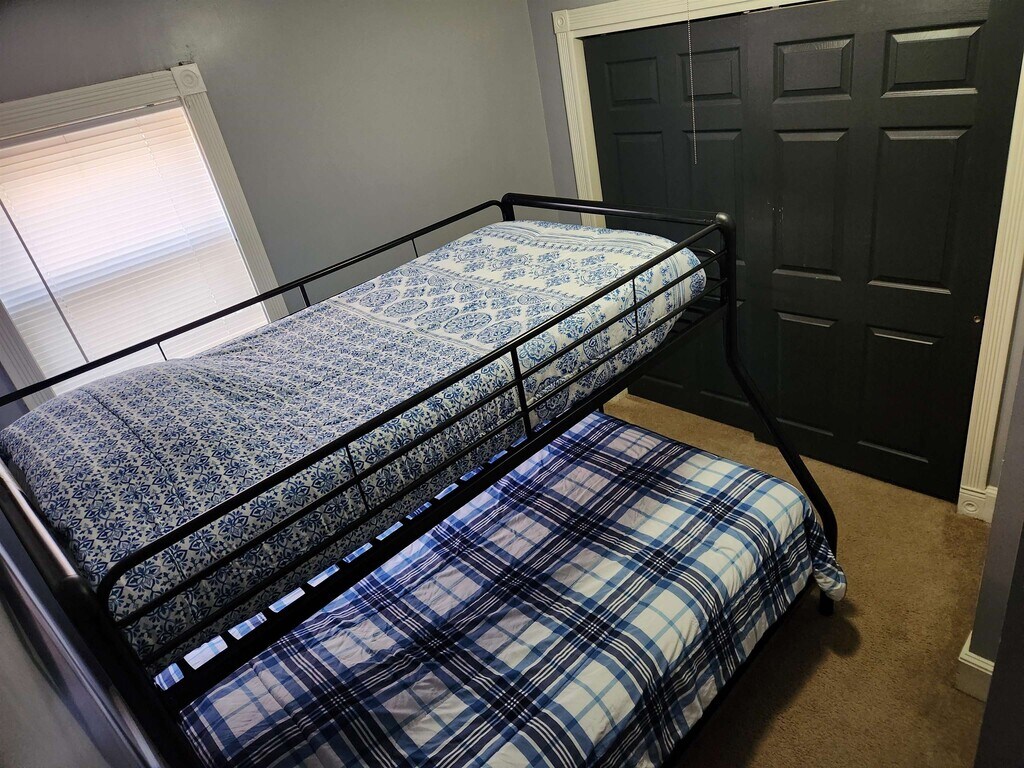 Escape to this charming and spacious rental unit, where modern comfort meets classic style. Step inside to discover a place bathed in natural light, with beautiful hardwood floors that guide you through a welcoming, open layout. The heart of the home is a fully equipped kitchen, featuring bright white cabinetry and sleek black countertops, perfect for whipping up your favorite meals. A dedicated dining area is right there, making it easy to share a home-cooked meal. Relax and unwind in the cozy living room, a perfect spot to read a book or stream your favorite show. When it’s time to call it a night, you'll find three unique bedrooms waiting. The Front Bedroom is a sun-filled retreat with multiple large windows, while the Middle Bedroom offers a quiet, relaxing ambiance. The Back Bedroom provides a peaceful haven, complete with its own private door. A clean, central bathroom ensures everyone can get ready for the day with ease. For your convenience, you'll also have in-unit laundry and dedicated off-street parking for 2 cars. SECTION 8 ACCEPTED! This is a great unit in a convenient location, ready for you to move in. There is a non-refundable $49 fee per applicant for a background and credit check. Cat OK with $50/M fee. No Dogs. Currently used as an AirBnB. MLS# 5060451