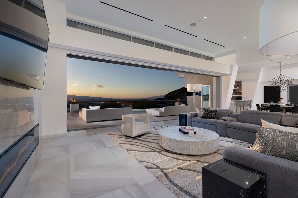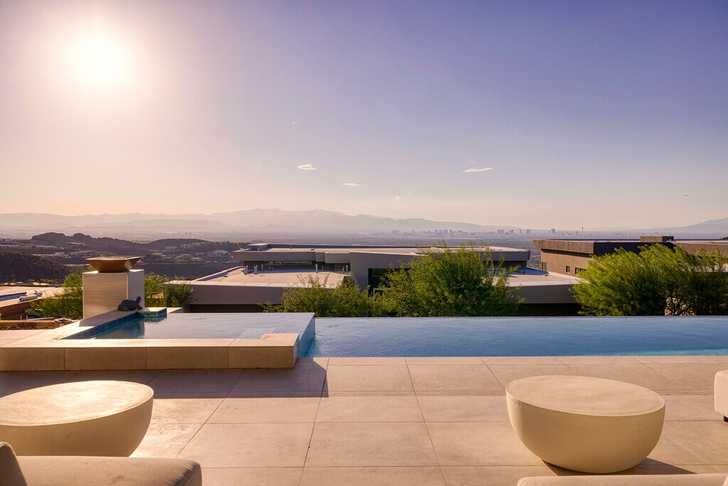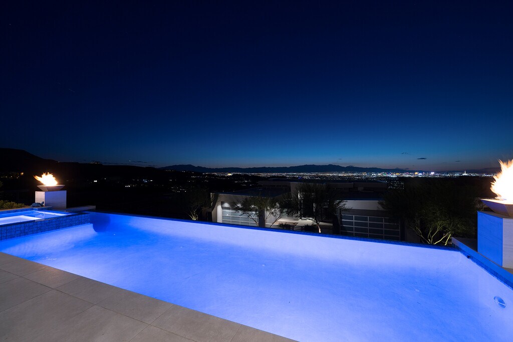 Modern 1 Story Custom Smart Home w/ Strip, Mountain & City Views from The Richard Luke Five Star Collection at MacDonald Highlands. Glass Pocket Walls, Porcelain Floors, High Gloss Custom Cabinetry, Wolf/SubZero. Quartz Waterfall Counters. Wine Room & Bar. Media Rm. Control 4, Linears. Outdoor Kitchen. Infinity Pool & Spa. Country Club Lifestyle: Private Member's Only Golf, Tennis & Swim, Fitness, Bar, Dining & Clubhouse