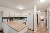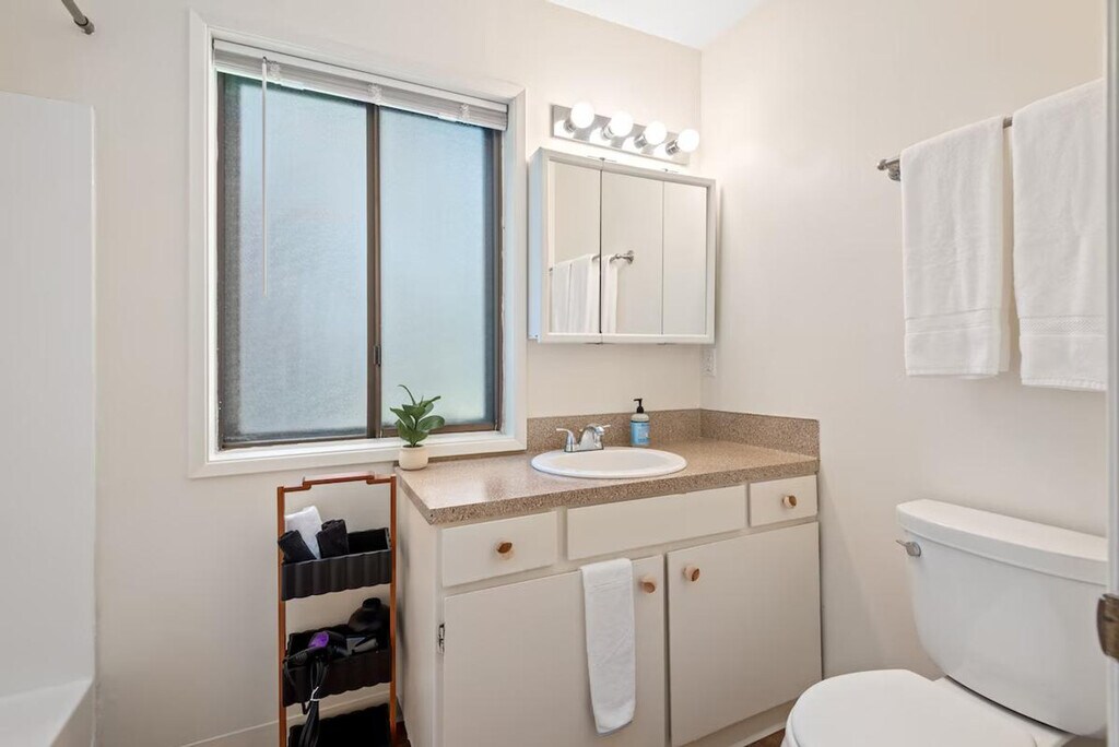 The advertised rate of $2,617/month is the lowest available price, based on a 1 month(s) and 2 day(s) stay with a move-in date of February 21, 2026. Rates vary depending on the duration of stay, season, and other parameters. For exact pricing and additional pricing components, please visit our website and enter your desired move-in and move-out dates. The rate is applicable when billed upfront; it can be higher if billed in multiple payments. Feel at home in this calming, restful, pet-friendly oasis in Southwest Portland. This 1st-floor, 2-bedroom apartment features a private covered balcony and is walkable to the Village. There are two steps up to the walkway to the front door, and while the apartment is on the ground floor, it is above a basement, and the balcony faces the rear of the building and is not ground level. The kitchen is fully equipped with cutlery, plates, glasses, a slow cooker, roasting pan, rice cooker, microwave, dishwasher, toaster, electric range, full-size fridge with freezer, blender, coffee maker, hot water kettle, knives, pots and pans, and everything you need to live comfortably away from home. The primary bedroom has a king-size bed with extra linens, a large closet, a dresser, and a smart TV. The second bedroom is outfitted with a queen-size bed and a large closet with a closet organizer. There is a half bath located in the hall between the two bedrooms, and the main, full bath (with shower and bathtub) is located in the primary bedroom. The main living area includes a comfy couch and a smart TV for relaxing, as well as a full-size dining area. This apartment features dedicated free parking and ample storage. There is one uncovered parking spot assigned to the unit, as well as plenty of unassigned parking for a second vehicle. Laundry facilities are located on-site in the basements of the adjacent buildings and are accessed with a key and paid for through a smartphone app. This apartment is a short walk from charming Multnomah Village and steps from Gabriel Park and the local community center with a pool. Nearby landmarks include Gabriel Park (5-minute walk), Multnomah Village (1 mile), Lewis and Clark College (3 miles), OHSU (4 miles), Providence Milwaukee (6 miles), Providence St. Vincent (6 miles), and Legacy Good Samaritan (7 miles). As the unit is on the first floor, there are occasional, typical sounds from the neighbor above, however, a white noise machine has been included for your use. Includes a dedicated workspace with high-speed Wi-Fi. [SI]