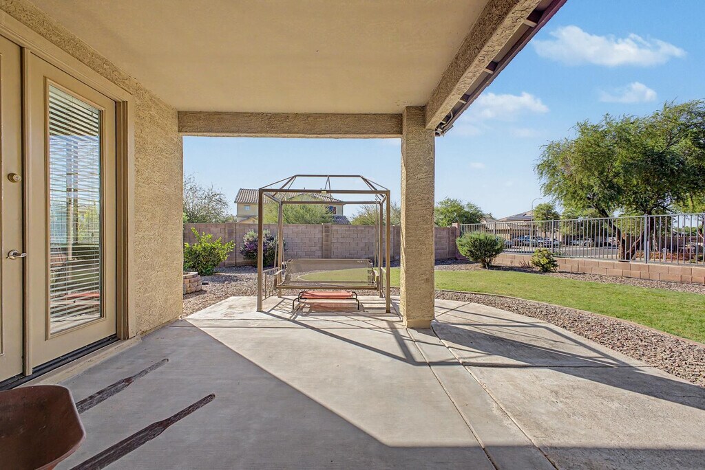 Attractive corner lot home with nice curb appeal*3 bedrooms + den/office*Neutral paint throughout*Split Open floorplan with large Living/Dining area*Eat In Kitchen with granite countertops,stainless appliances,breakfast bar & nice sized pantry opens to Family room perfect for family gatherings & entertaining*Large,easy to maintain backyard that backs up to greenbelt. Close to schools,dining and entertainment* Easy freeway access makes it easy to get to all the Valley has to offer.
