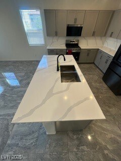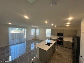 Location, Location, Location! Stunning 2025 new build in highly desirable Southwest Las Vegas. This move-in ready two-story home offers 4 bedrooms, 3 bathrooms, and 2,124 sq ft of modern living space. Features include marbled tile flooring downstairs, quality carpet upstairs, and upgraded faucets, backsplashes, and sinks. The open floor plan provides a bright, functional layout with a first-floor bedroom and full bath—perfect for guests or multi-generational living. Upstairs includes a spacious loft ideal for a home office or playroom, and a private primary suite separated from two additional bedrooms. Located in a quiet, secure community with a small park, just 1 minute to the highway, 5 minutes to Costco and Durango Casino, and 3 minutes to the nearest hospital. Home includes new washer, dryer, and refrigerator. Enjoy beautiful mountain views and stunning sunsets—all in one of Southwest Las Vegas’s most convenient locations.