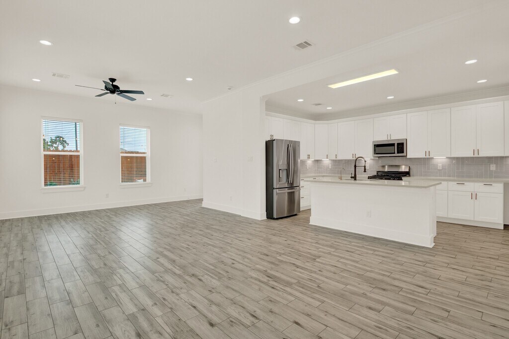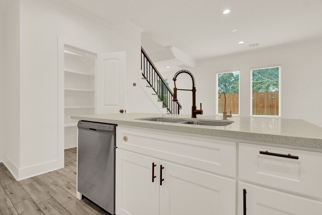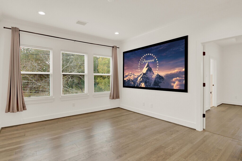 Located in a residential community on a larger corner lot,this two-story home offers expanded yard space and natural light from multiple exposures. The first floor features an open living,dining,and kitchen area with wide windows,quartz countertops,stainless steel appliances,soft-close drawers,ample cabinetry,and an island. A half bath is also on this level. Upstairs includes well-sized bedrooms,full bathrooms including a primary en-suite,and generous closets. A game room with an integrated media screen system offers additional flexible space,with extra windows benefiting from the corner positioning. An attached garage,private driveway,and fenced outdoor area with built-in planters and a patio provide usable exterior space. A whole-home water filtration system is included. Positioned along the community’s single internal street with physical proximity to I-45,610,and 290 for convenient access. A beautiful home designed for space,light,and modern living. MLS# 28326841