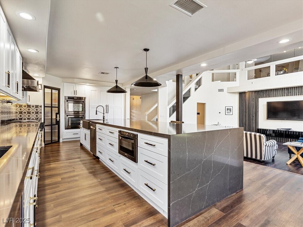 LUXURY LIVING AT A BARGAIN! GREAT FOR ENTERTAINING OR ACCOMADATING A LARGE FAMILY, ENJOY OVER 5000 SQ. FEET WITH FORMAL LIVING ROOM WITH A CHARMING 3-WAY GAS FIREPLACE, SOARING VAULTED CEILINGS, A FORMAL DINING RM & A COMPLETELY UPDATED GOURMET KITCHEN WITH A HUGE CUSTOM GRANITE WATERFALL ISLAND, STYLISH STONE COUNTERTOPS & BACKSPLASH, TOP OF THE LINE APPLIANCES, CABINET-FINISHED BUILT-IN REFRIGERATOR/FREEZER, WINE FRIDGE, WALK-IN PANTRY, ALL OVERLOOKING AN EXPANSIVE FAMILY RM W/VAULTED CEILINGS & FLAT SCREEN TV. LUXURIOUS DWNSTRS PRIMARY SUITE FEATURES A DELUXE SPA-LIKE BATHRM W/ A HUGE CUSTOM WALK-IN SHOWER, DBLE VANITIES & HUGE WALK-IN CLOSET! ENJOY MOVIE NIGHT IN THE BASEMENT THEATER RM W/ SOFA RECLINERS & PROJECTION SCREEN TV. 4 MORE SPACIOUS BDRMS UPSTAIRS PLUS A LOFT/OFFICE. ENJOY THE PRIVATE BACKYRD WITH COV. PATIO, LOW MAINT. LANDSCAPING & PLENTY OF ROOM FOR ENTERTAINING. FRONT YARD SYNTHETIC GRASS & LOW MAINT. LNDSCAPE. GREAT LOCATION-CLOSE TO TONS OF RESTAURANTS & SHOPPING.