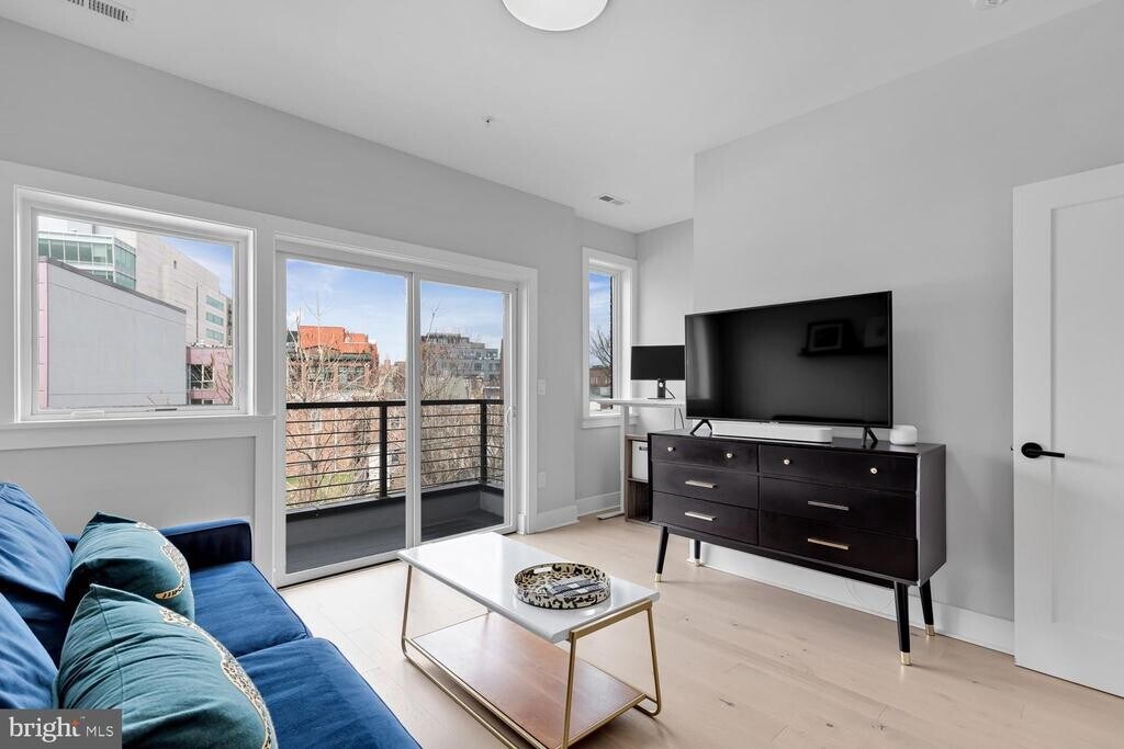 Townhome-style living in vibrant Shaw! This two-level, two bed, two bath home in a boutique building in the heart of Shaw is tucked down a quiet alley off of S St. On the sunny main level, the chef’s kitchen features state-of-the-art Bosch appliances, Pottery Barn kitchen light fixtures, and quartz countertops. Upstairs is the massive main bedroom suite which is complete with a large walk-in closet and walk-in shower. The second bedroom doubles as an office while you’re working from home. Take your work or relaxation outdoors on to one of your two full balconies. This home has tons of natural light, with custom automated blinds on the main level, with added brightness from the beautiful European engineered oak floors. Thoughtfully equipped with a Nest thermostat and alarm and a Yale keypad for entry. Easily access all that Shaw has to offer: Dacha, the city’s hottest restaurants, multiple dog parks. Low HOA fee & friendly HOA. Sellers rent a garage parking spot nearby for only $150/mo. All square footage is approximate. Rent includes water, gas, sewer, and trash. Tenant is responsible for Electricity, Internet, and Cable. Available immediately - move-in date is flexible.