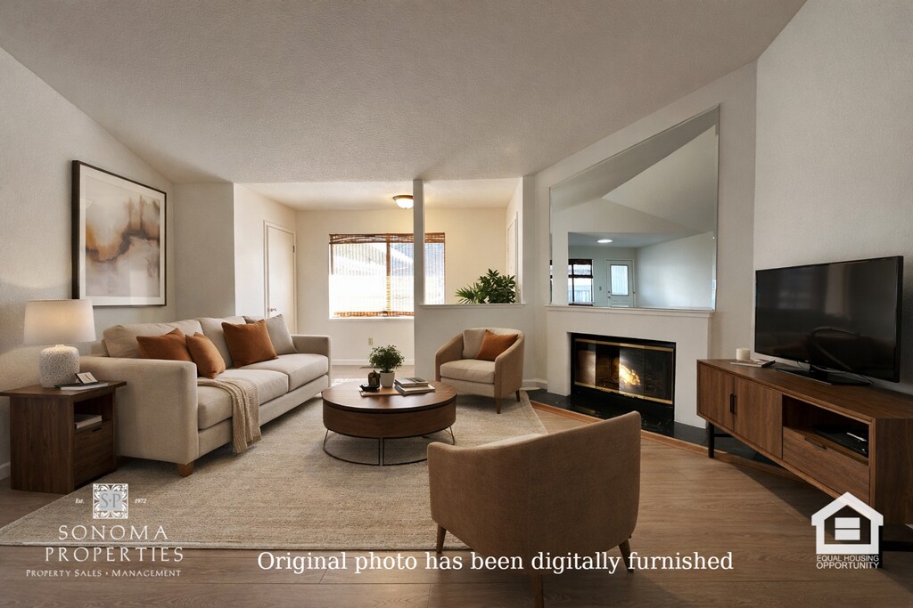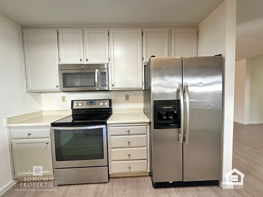 Enjoy the convenience of downtown Sonoma living in this well-appointed 2 bedroom, 2 bathroom duplex. This comfortable home features attractive laminate flooring throughout the main living areas with soft carpeting in the bedrooms for added warmth. The bright and welcoming living space includes a cozy fireplace and skylights that bring in beautiful natural light. The kitchen is equipped with stainless steel appliances, offering both style and functionality for everyday cooking. Additional highlights include a washer and dryer, a spacious two-car garage, and a private fenced yard—perfect for relaxing outdoors or enjoying Sonoma’s beautiful weather. Ideally located near Sonoma’s historic plaza, local dining, shopping, and wine country attractions. No pets. Service animals or emotional support/assistance animals welcome. No smoking! Available with a one-year lease term. Please contact Sonoma Properties for more information at . Sonoma Properties DRE Lic #01931046 *All digitally altered photos are marked as being digitally altered. Any others are the original, unaltered photos.