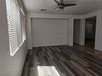2-story home located in Aliante. The floor plan has a large family room, a formal living room, and a dining area. The kitchen has granite countertops, an island, recessed lighting, and stainless steel appliances, with access to a backyard. The one-bedroom is on the first floor, while the second floor has a large primary bedroom that has a walk-in closet, an en-suite bath with a separate tub and shower. There is a loft upstairs. The laundry room is located upstairs.